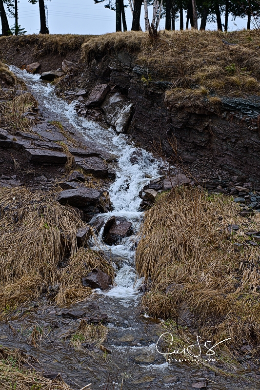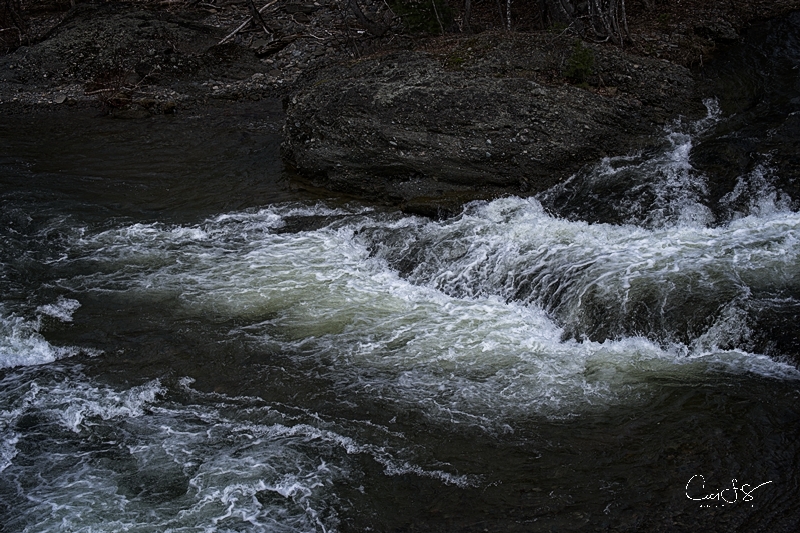 I ended up in Waterford, NB, just beyond Poley Mountain. Needless to say, after weeks of wretched rain, the ski hill is closed. The streams and rivers, however, are flowing hard and fast with the spring run-off.