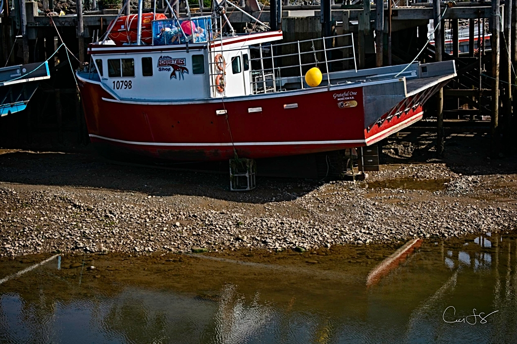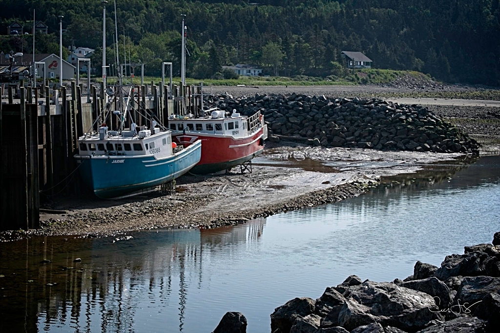 The Bay of Fundy boasts the highest tides in the world and at no time is that more obvious than at low tide when fishermen have to block their boats resting on the ocean floor. If they don’t the boats will tip as keels are meant for slicing through water, not supporting a top-heavy boat when there’s no water to help.