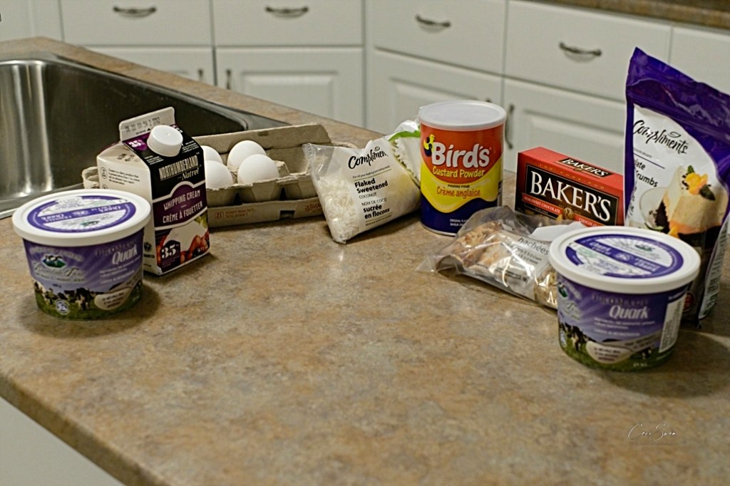 Friends of mine own Armadale Farms Dairy Products. Sometimes I get to be the ‘test kitchen’ for recipes – and this one’s a goodie. There’s not much more Canadian in the dessert line (other than maple syrup of course) than Nanaimo Bars but when you make the custard filling with Quark (a European style cream-cheese-like product) – WELL!