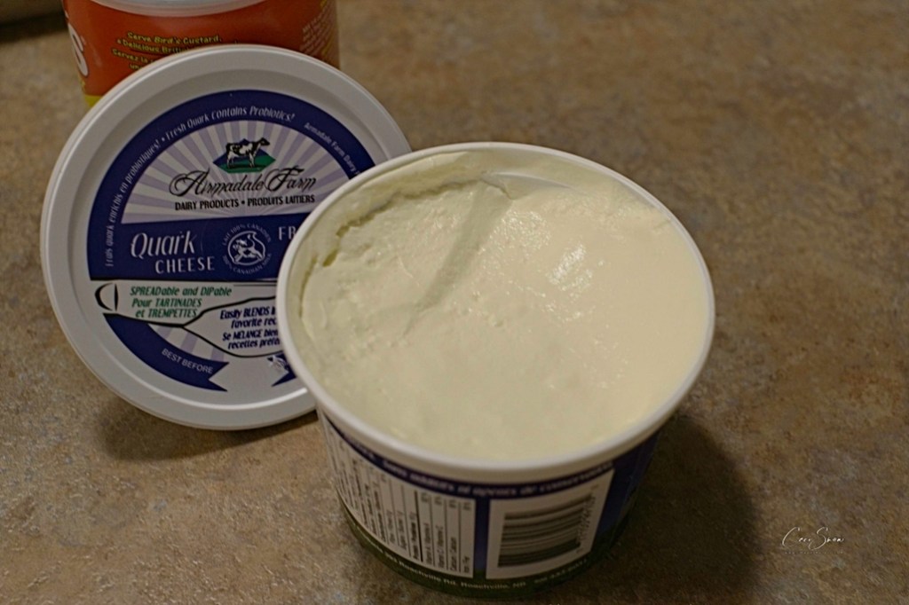 Beat quark, sugar and custard powder until well blended. Add the eggs, one at a time, mixing on low speed after each addition. Pour over chilled crust.