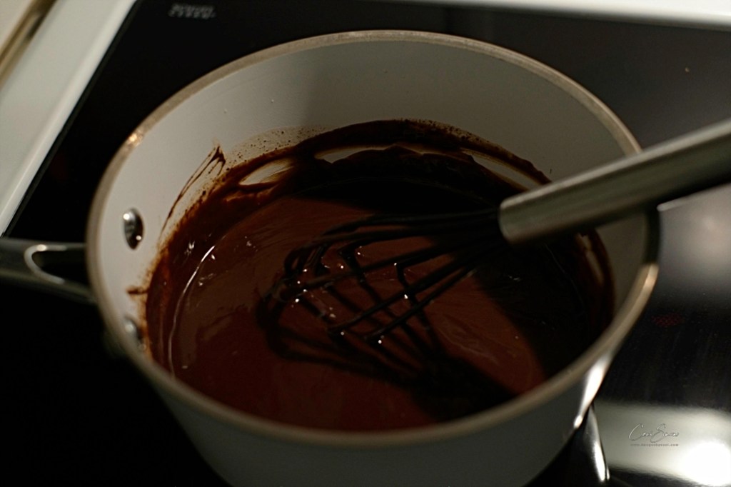 Place whipping cream and chocolate in a pan over medium heat, stirring steadily until the chocolate has melted and is well blended with the cream.