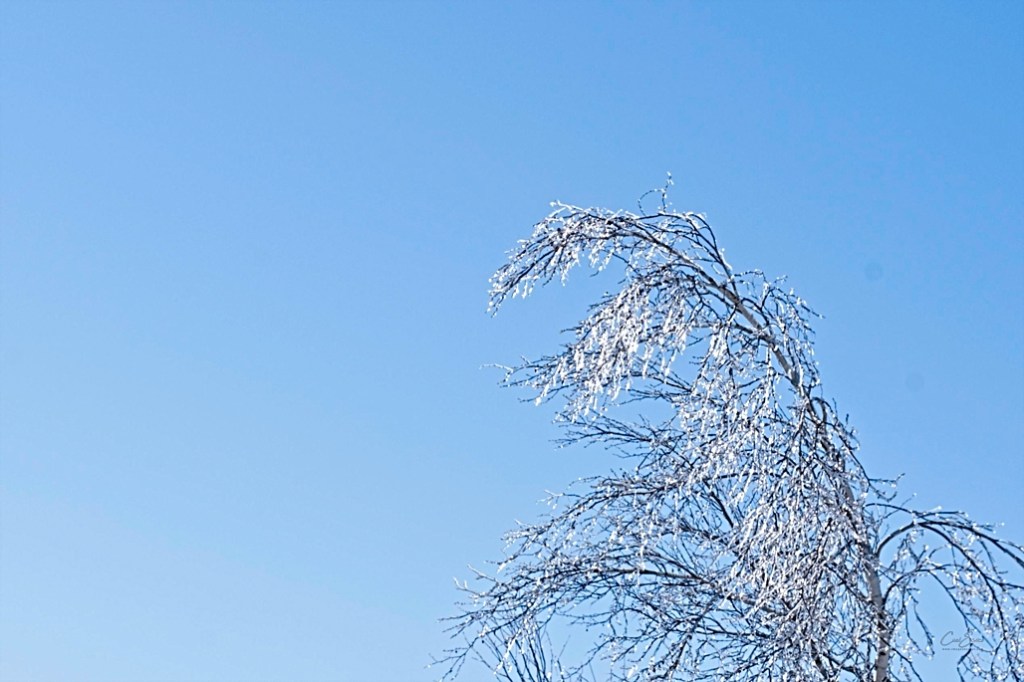 On the other hand, trees encapsulated with ice shimmer in the morning sun.