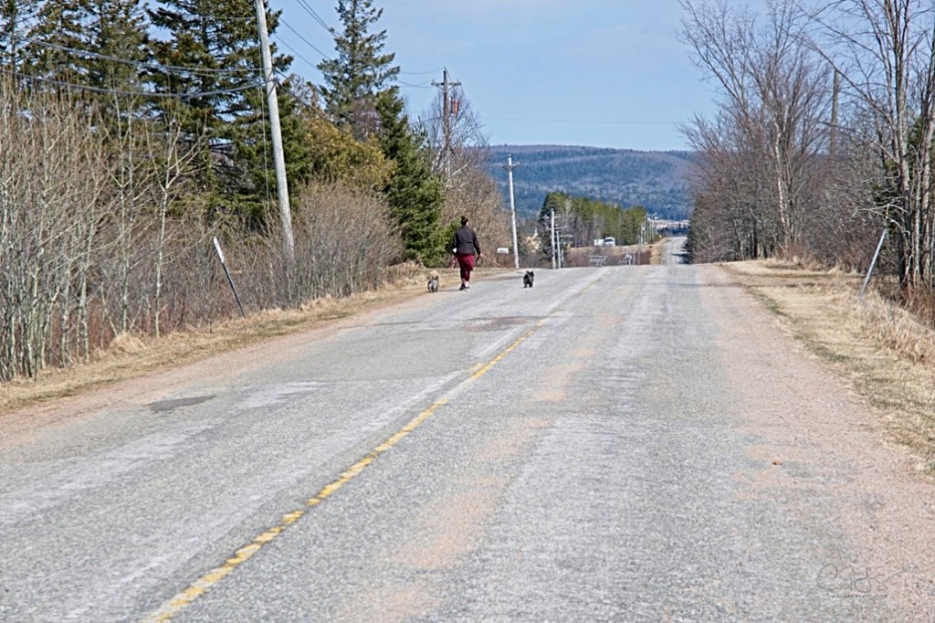 Another neighbour taking advantage of a lovely spring day to give her little dogs some exercise. Obviously we had lots of room for social distancing!