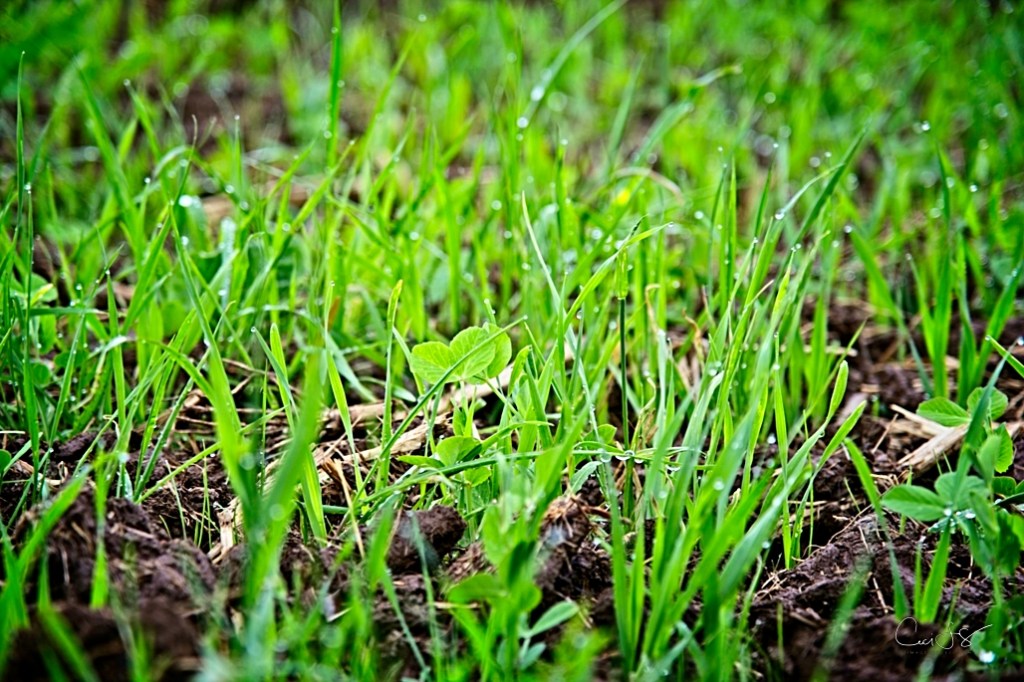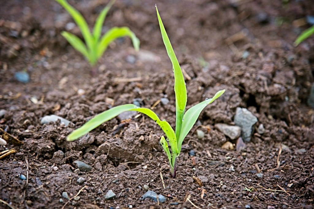 Across the road, corn is sprouting up in one of the farmer’s fields, while in the other, grass for hay has been planted and, thanks to one night’s recent rain, it too is popping up and enjoying the sunshine.