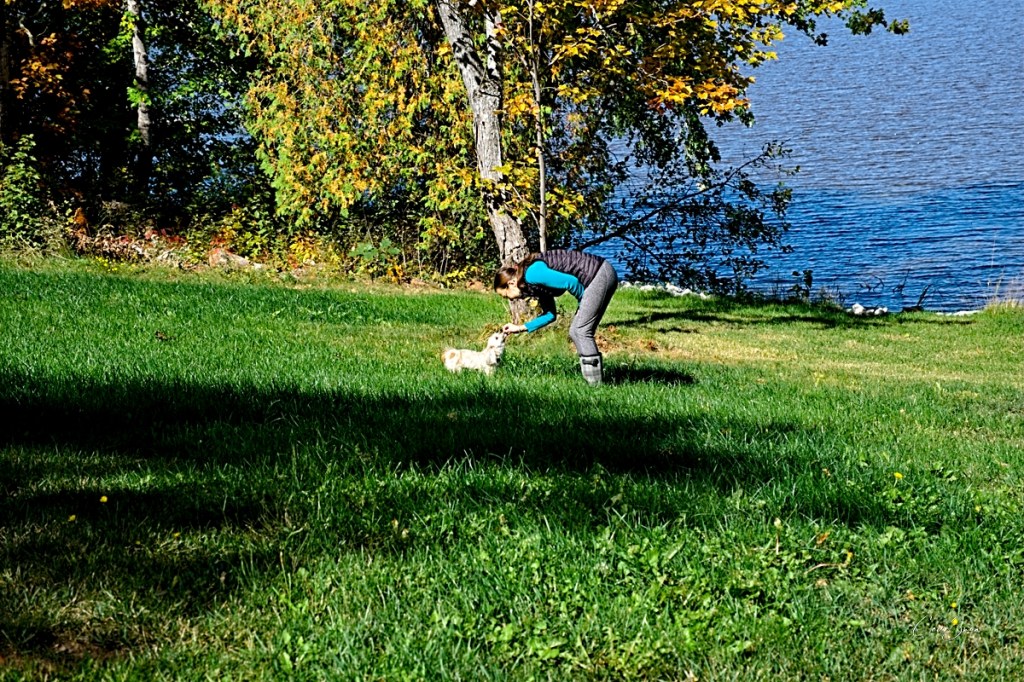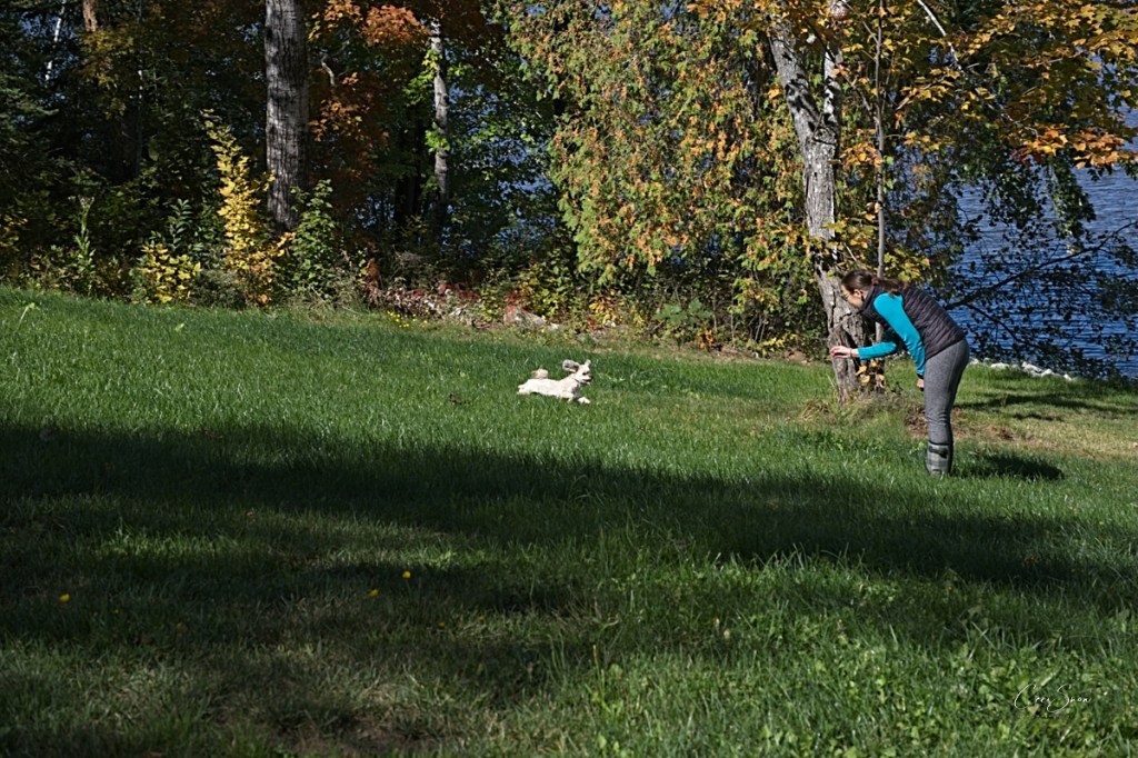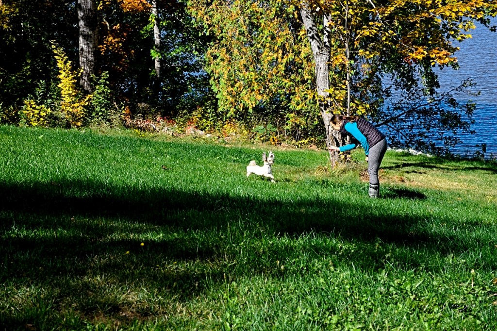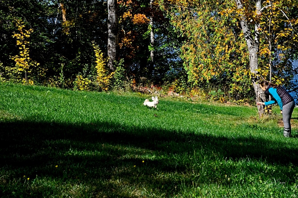 The crisp autumn air encourages everyone to to be playful and exuberant. Brady indulged in a good old rip and tear around the yard.