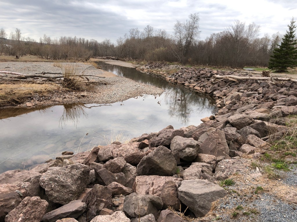 Much of the trail runs beside Trout Creek. I was quite surprised at how low the water is already considering that flood season only officially ended this week. When I rode through there a couple of weeks ago the water was much higher. The trail at this point is quite churned up so, in deference to my age and safety, I got off my bike and hand-walked it through the deep and rocky section. The Town of Sussex has posted signs asking for patience as they work to restore any flood- or spring-damaged areas of the trail