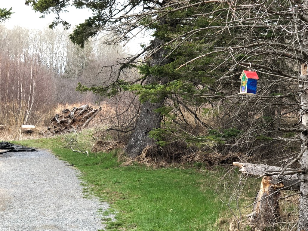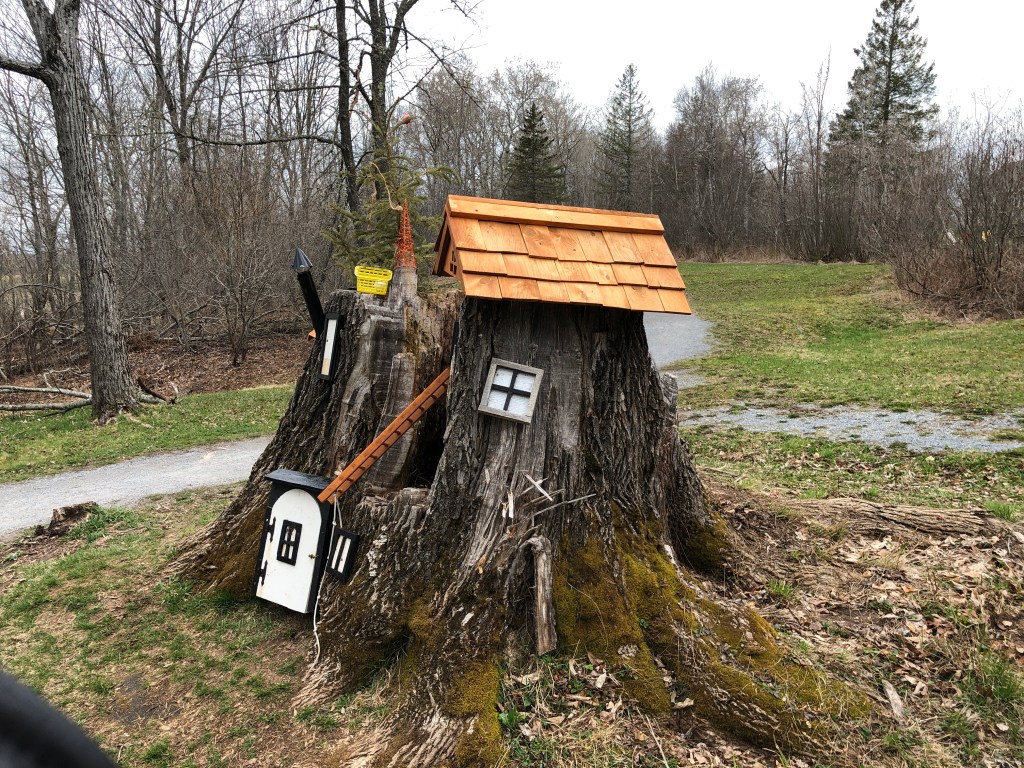 As you approach the bend in the creek from the Sussex Corner end, someone has added a wee fairy house in the tree.