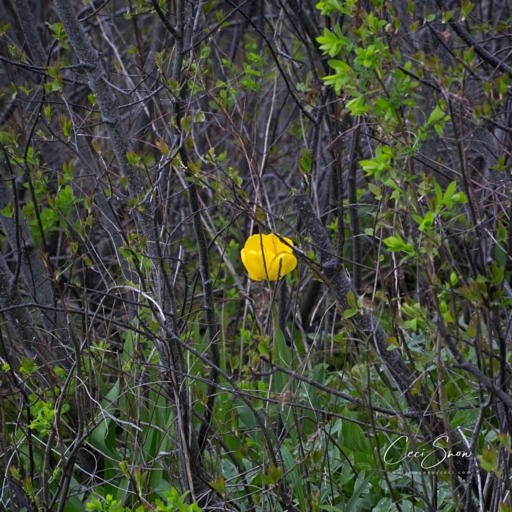 One lone tulip has emerged in the bushes along the edge of our lawn. Whenever I have flowers that are past their prime, we toss them into the bushes for Mother Nature to do with as she pleases. I had no idea that tulips might emerge from seeds as I’d always thought they had to come from bulbs carefully planted in suitable soil. Apparently I was wrong. This one is cheery and strong standing out among the emerging bushes and weeds. Or is the tulip itself a weed? A dear friend of mine once said that a weed is just a plant growing in the wrong place. Hmmmmm.