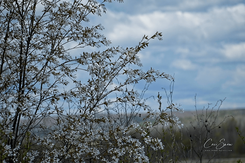 Even on a breezy day the sky offers a fluffy background for the flowers bursting out of the roadside trees.