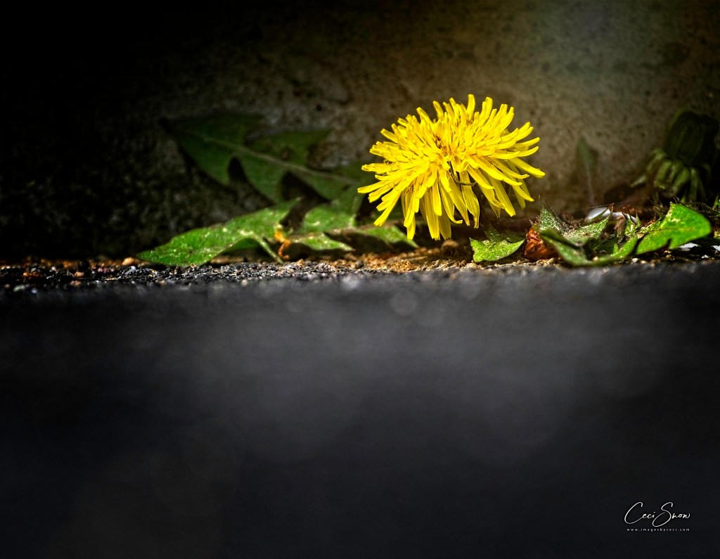 That said, dandelions are strong and persistent. This lone blossom poked itself up in a crack in the pavement between the driveway and the wall of the garage. Now THAT is determination.