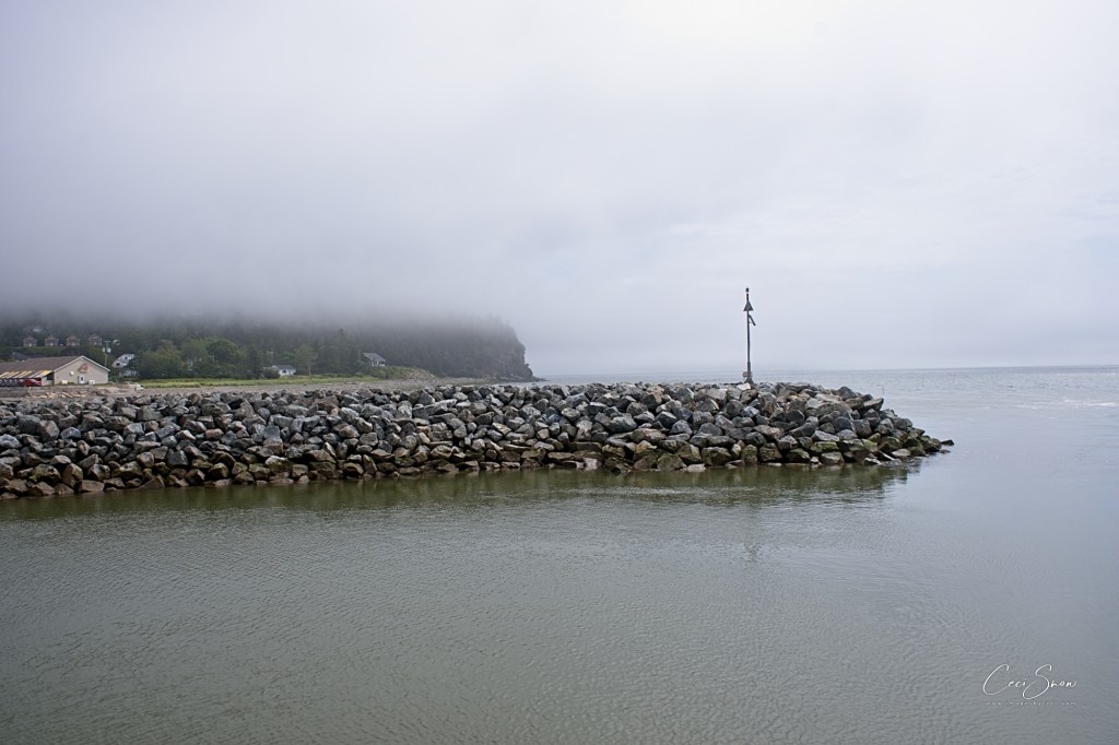 We stopped at the lookout facing the Bay but, although we COULD see the outline of the shoreline of Nova Scotia, it was mostly obliterated by the fog.