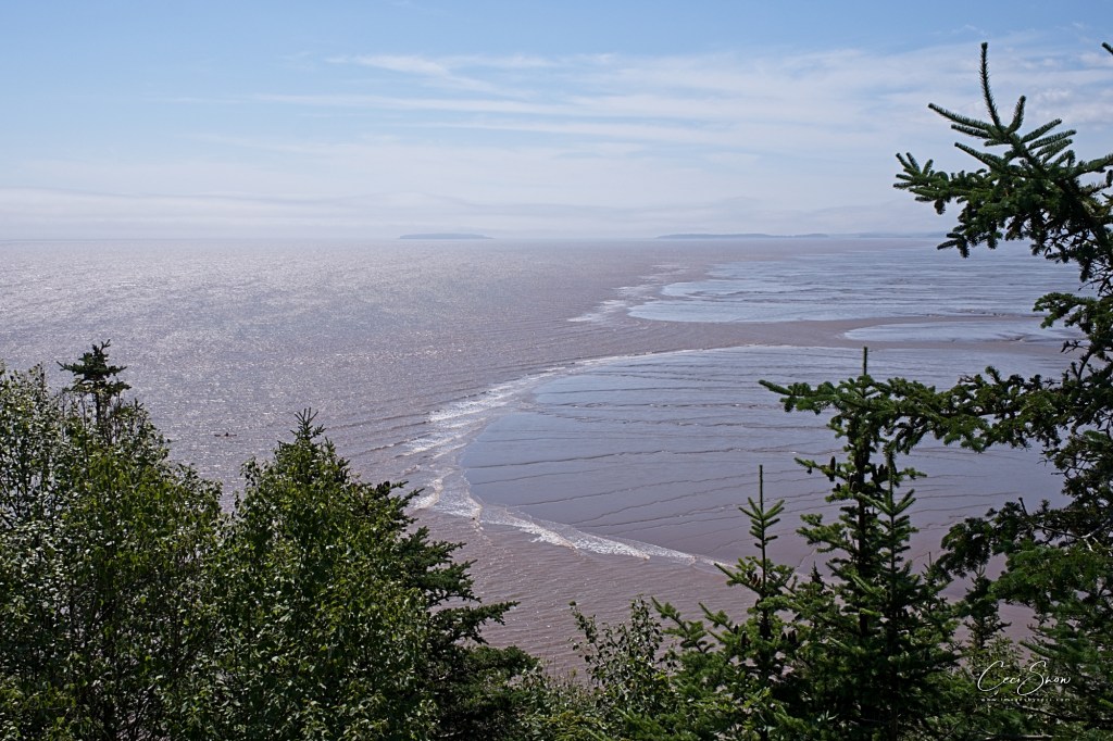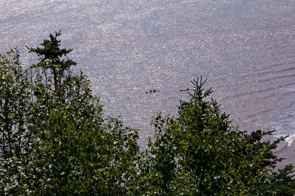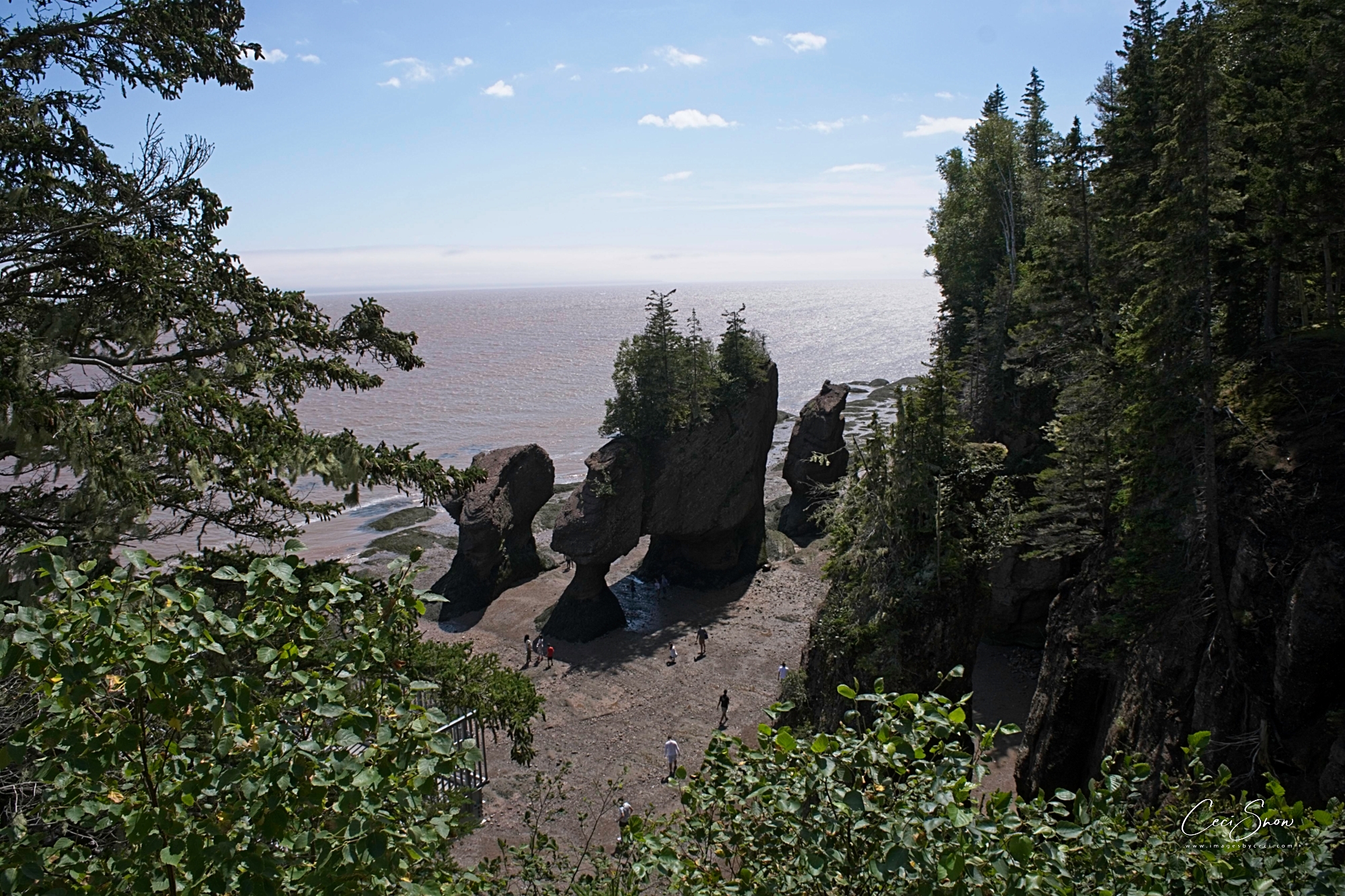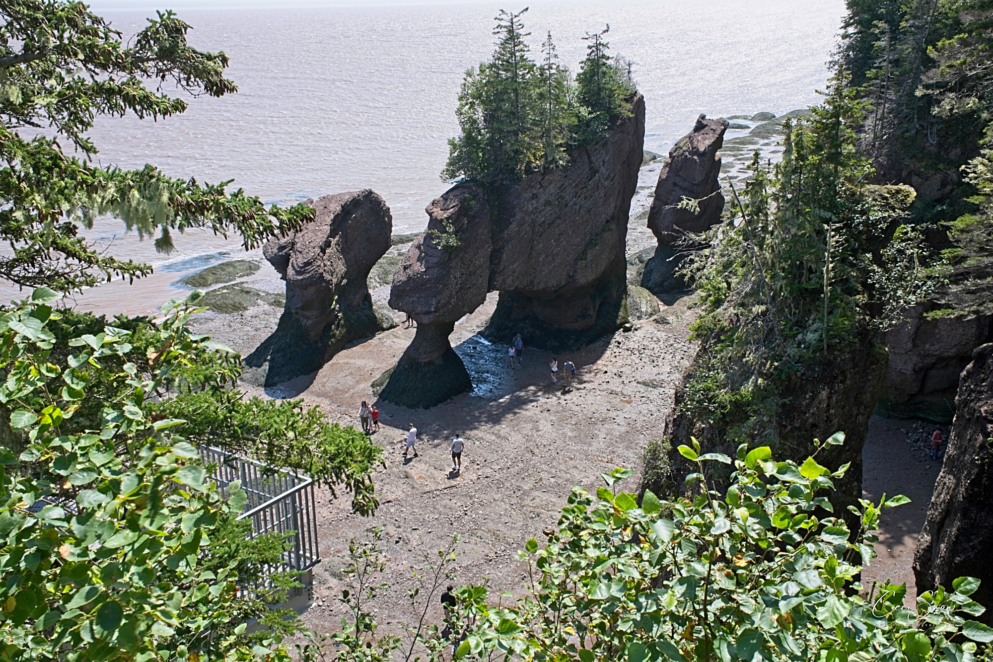 We drove on to #TheHopewellRocks and parked our car – one of the few with NB license plates surrounded by visitors from Quebec and Ontario, with a smattering from Nova Scotia. We grabbed our picnic lunches and settled down at a shaded table under some trees to enjoy our feast before heading into the park to explore. From a lookoff high above the ocean floor we spied more kayakers paddling back to shore against the falling tide. Our timing was excellent.