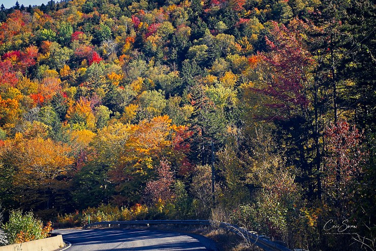 Over the past couple of days I toured around various side roads in our area. The autumn leaves are peaking now and, on a sunny day, they’re putting on quite a show!