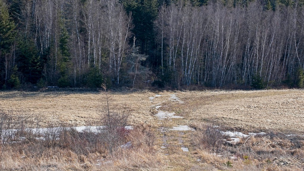 Down the road, most of the snow and ice has melted away from the huge hayfields, although much still remains within the shaded forests. At night I can hear the coyotes howling during their hunting and mating rituals – much more noticeable at this time of year when there are no leaves on the trees to muffle the sound.