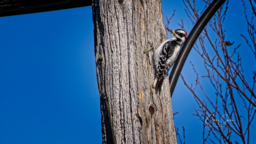 Closer to home, birds are still flocking to the feeders in our yard and perching on the trees and telephone poles nearby.