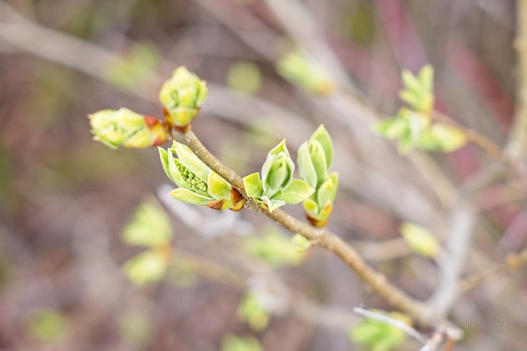 Spring has finally begun to show her colours in our neighbourhood. I went for a walk down Mulberry Lane this morning and noticed that every shrub, tree and twig along the roadside was budding cheerfully.