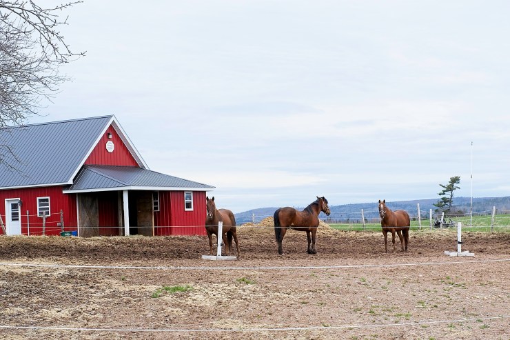 Barnyard cleaning has begun. As the owners work to remove the winter’s manure collection and give the ground a chance to rejuvenate, the horses are confined to a smaller area of the paddock.