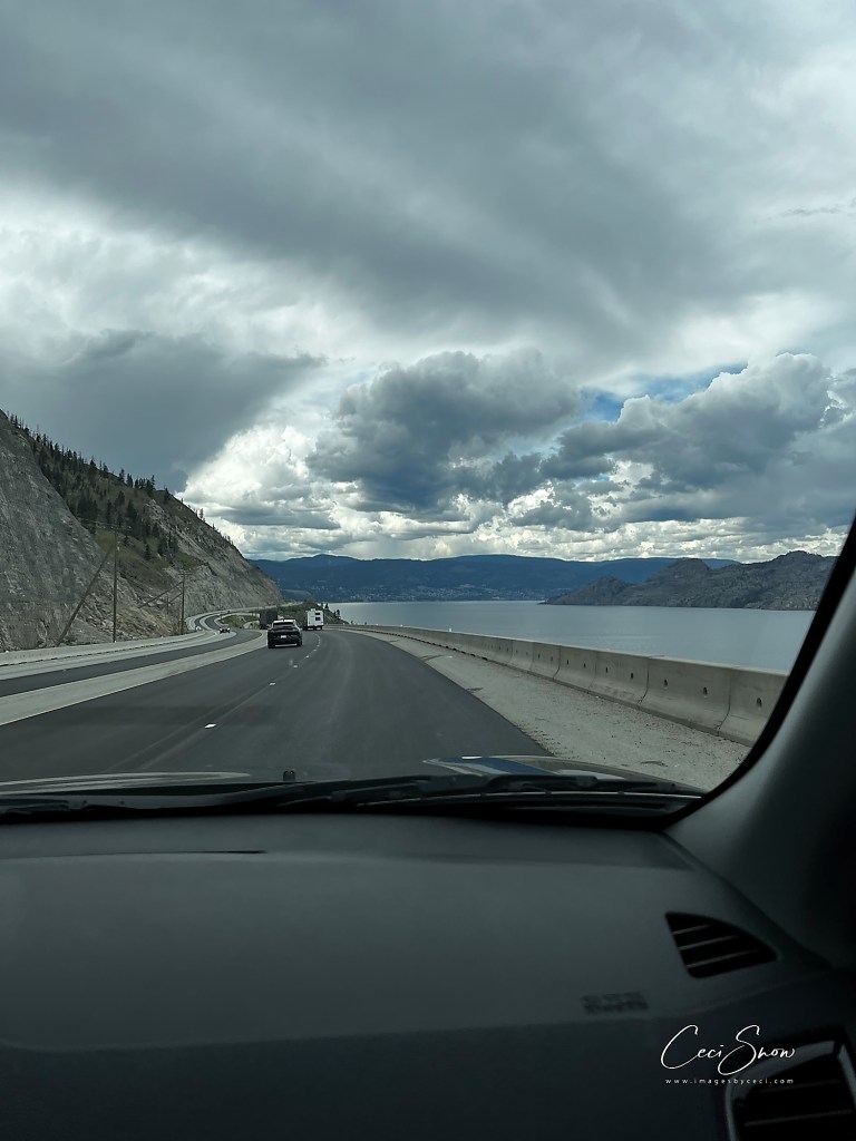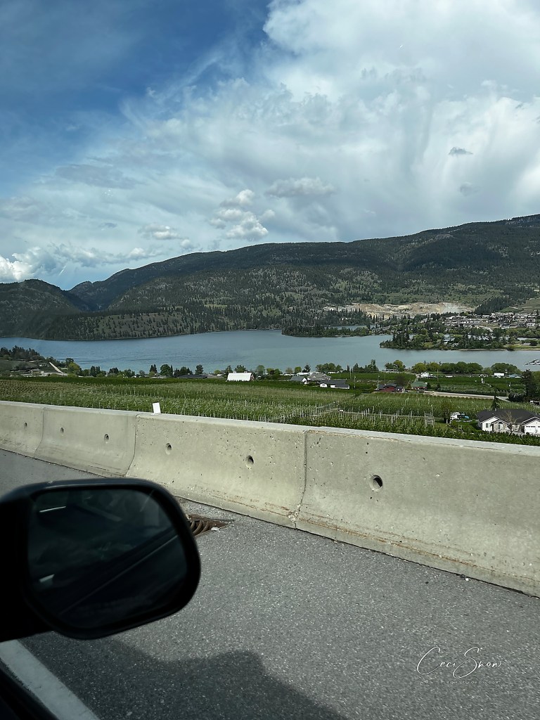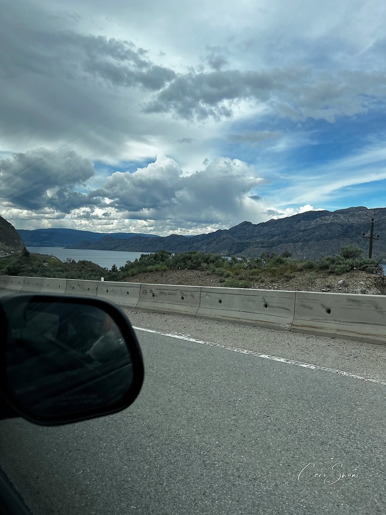 We took turns driving. One aspect of the trip that I especially enjoyed was letting Alison “ooh” and “Aaah” over the amazing scenery. Flying over the mountains gives you one perspective, but the grandeur doesn’t really hit you until you drive through them and look up, waaaayyyyyy up. These shots were along the highway as we followed the Okanagan Lake up to Matt and Terri’s place.