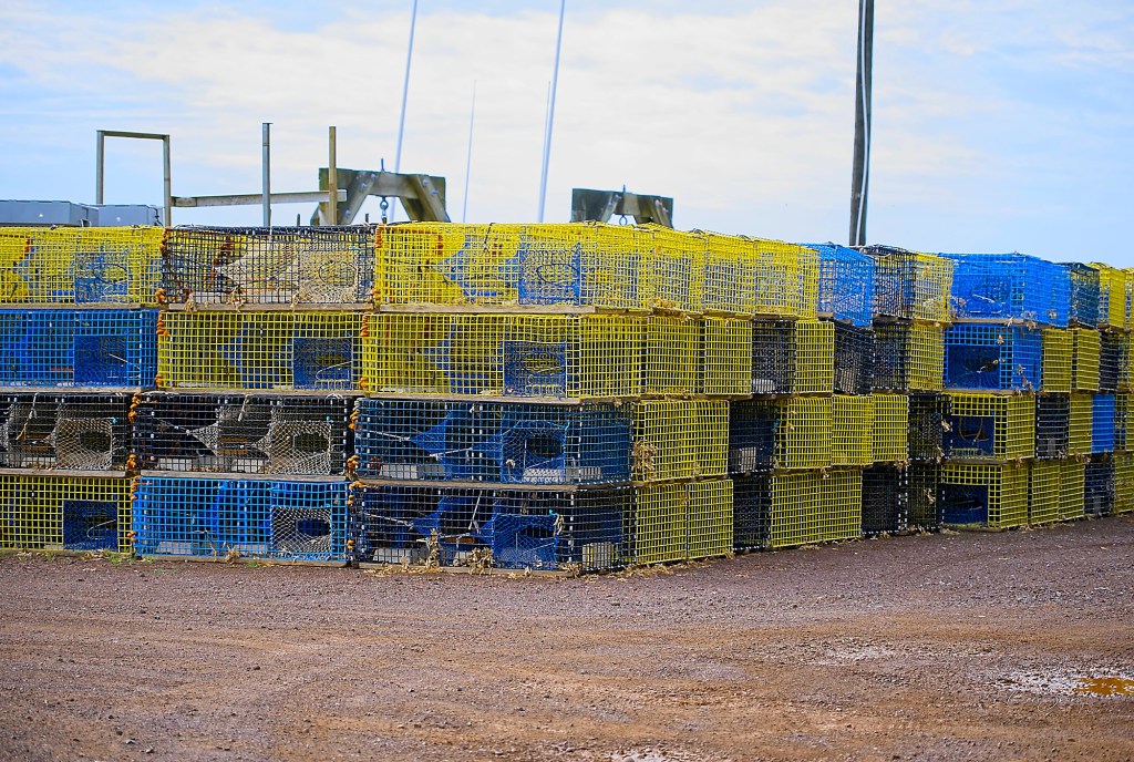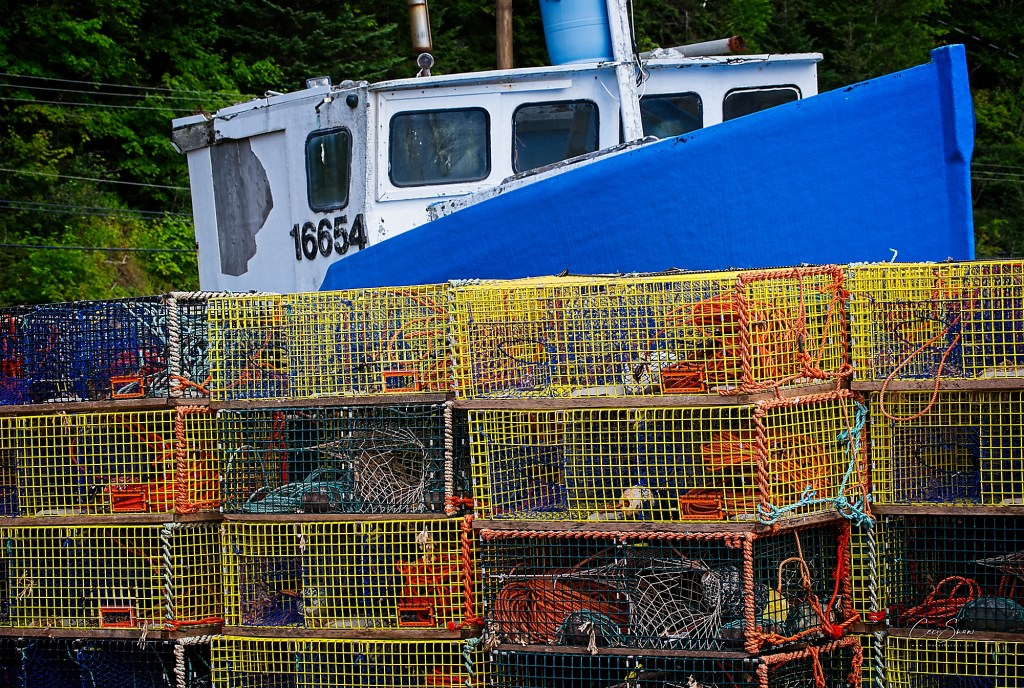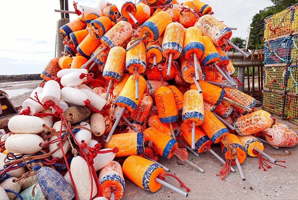 There was very little wind to disturb the lobster traps, buoys and fishing boats waiting to set out for work later on.