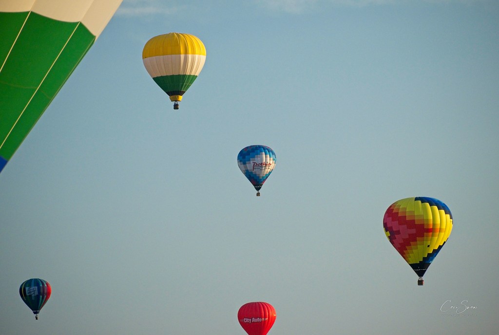 One by one they took to the skies. At times it looked like utter chaos and I was sure they’d bump into each other. The pilots are skillful and avoided connecting as they each found their own airspace and the breeze directed them out across the highway near Four Corners and off toward Smiths Creek