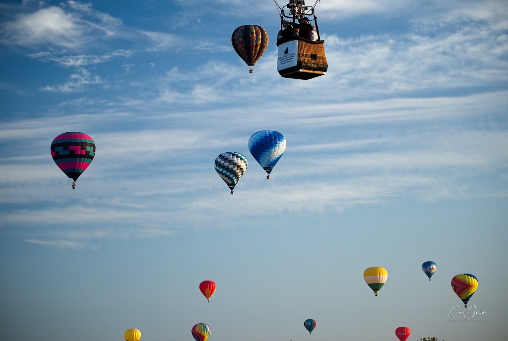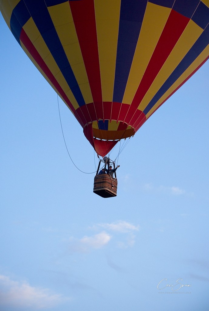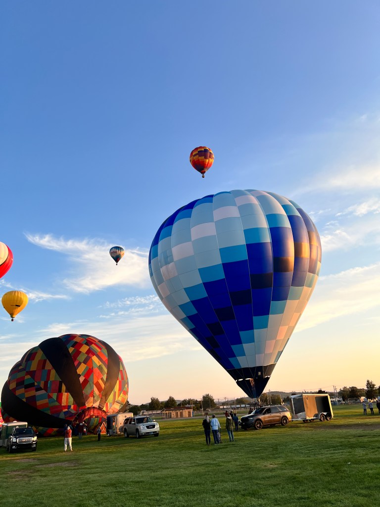 Pilots often arrive early and get a few flights in prior to the official start of the Festival, taking advantage of any good flying days. A good flying day is one with clear skies and minimal breezes. Often what feels like a kiss of wind on the ground can be quite strong when aloft and those winds determine whether it is safe to fly, or not. Balloons rely on air currents to navigate and the wrong wind could blow them severely off course and into dangerous situations.