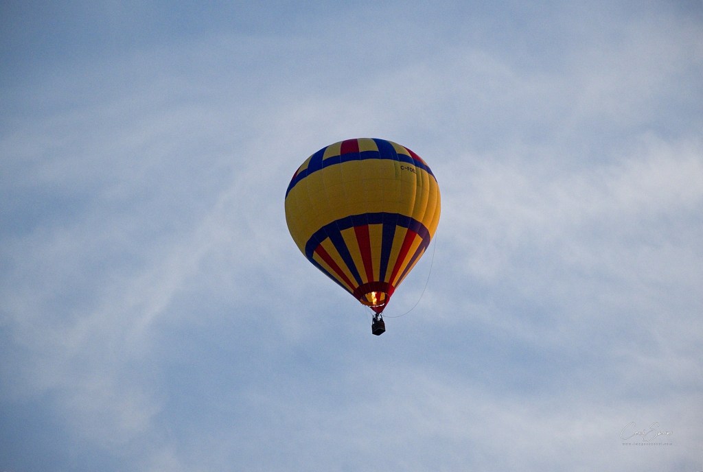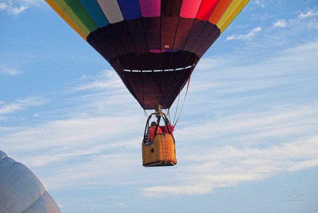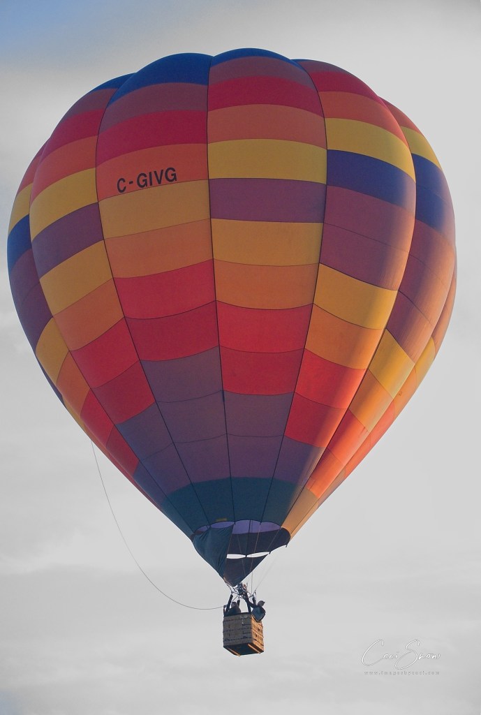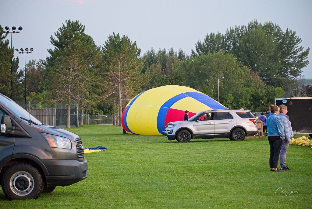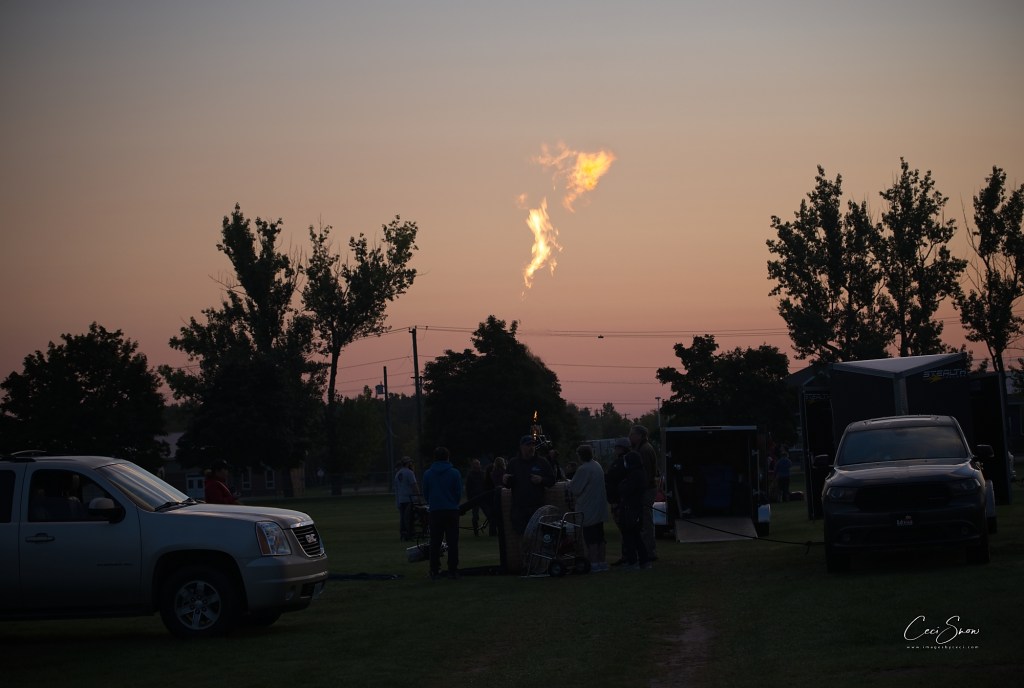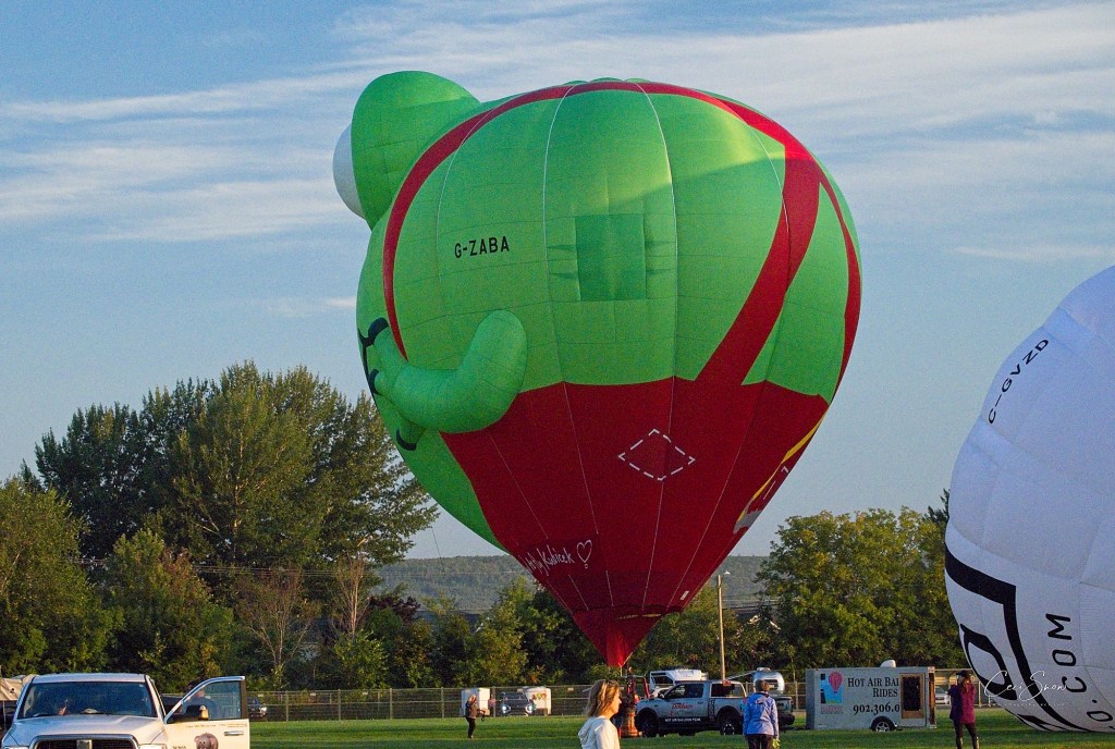 I headed down to the show grounds at Princess Louise Park before dawn, arriving just after 6:a.m. Day was just beginning to break on the eastern horizon. Ground crews, follow vehicles (that would track where ‘their’ balloon was going and get there to help land the balloon, fold it up and tuck it and its basket etc. away in their trailer, and pick up the pilot and his/her passengers to return to the start spot), pilots, passengers and spectators weren’t long arriving.