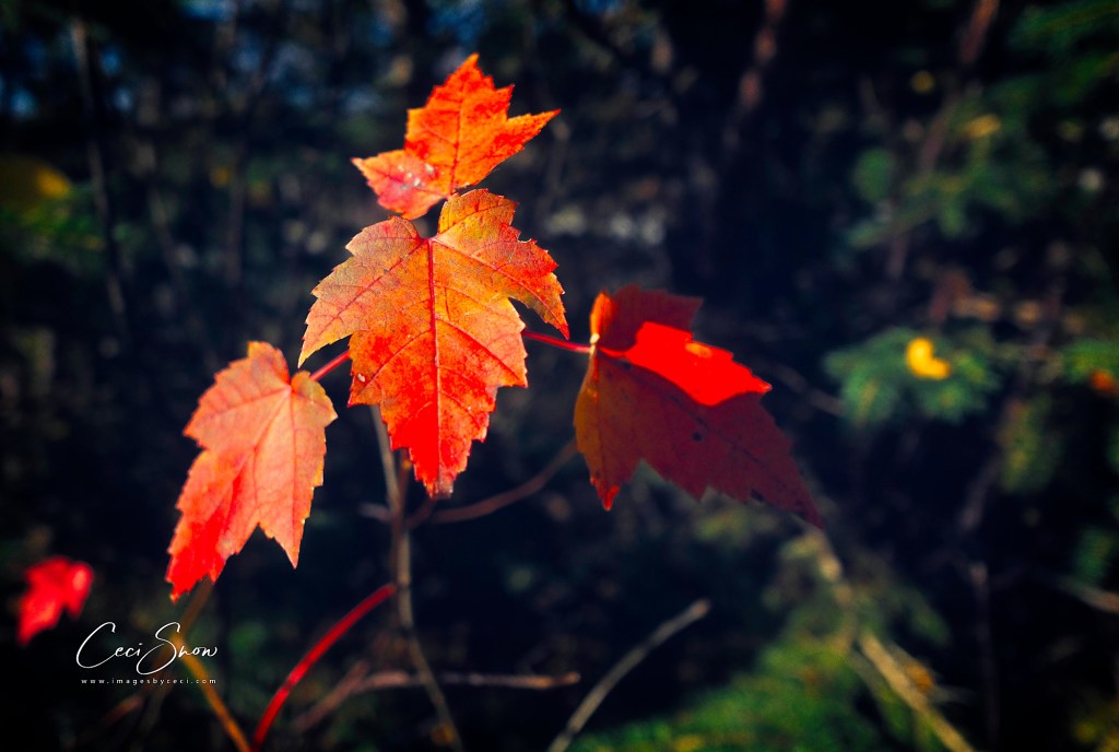As the days continue to get shorter and colder, anything that radiates colour and warmth appeals to me. Our “burning bush” in the front yard will hold its colour well into winter, thank goodness.