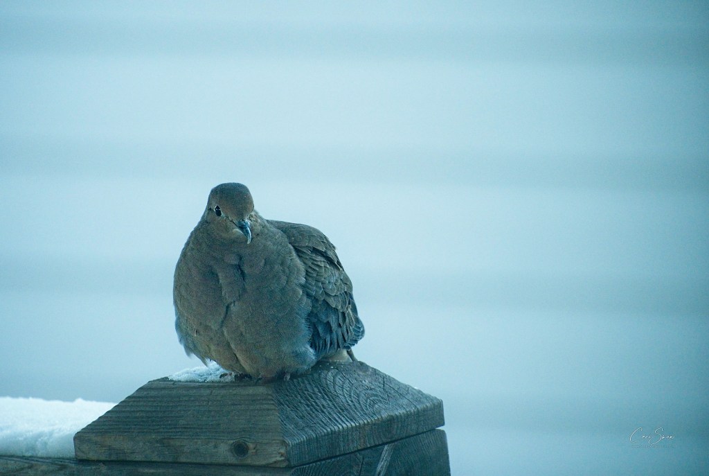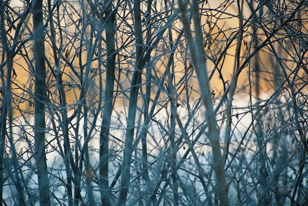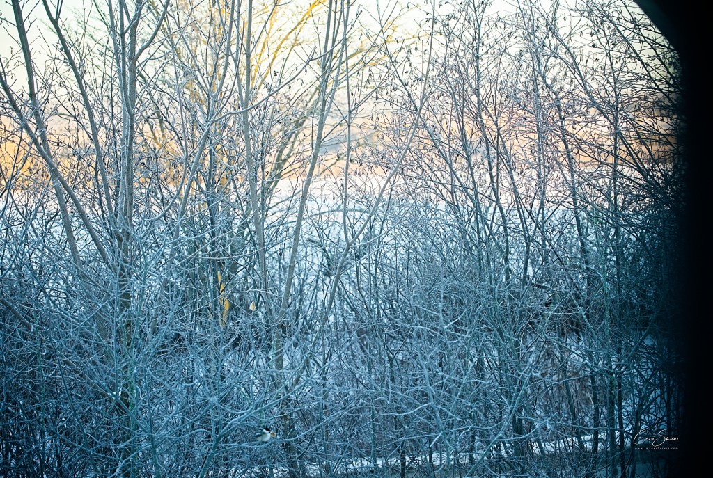 As the sun rose over the snow-covered hay field across the road, a chilly haze made me shiver. Flocks of various birds including Chickadees, Blue Jays, Sparrows, Doves, Cardinals (2 males, one female), Corvids and more descended on our feeders hoping to stock up on nice fat sunflower seeds and grains!
