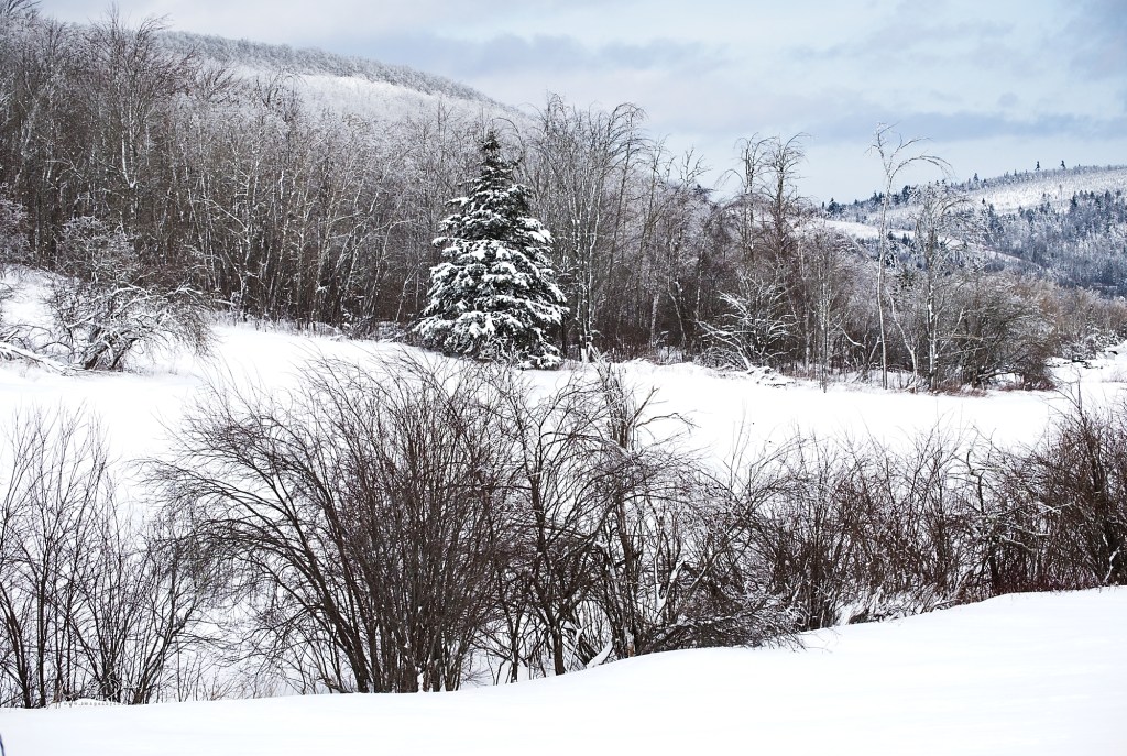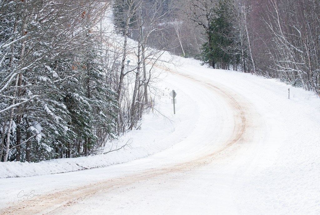 It was a long and winding road over hill and dale, punctuated with a thin strip of sand laid down by the passing snow plow. Later this week we are expecting warmer temperatures and rain that will, no doubt, turn this idyllic scene into a treacherous skating rink.