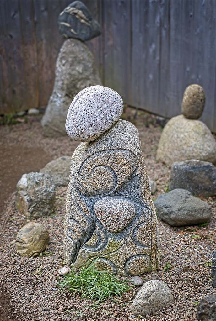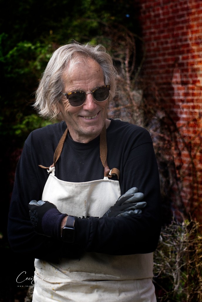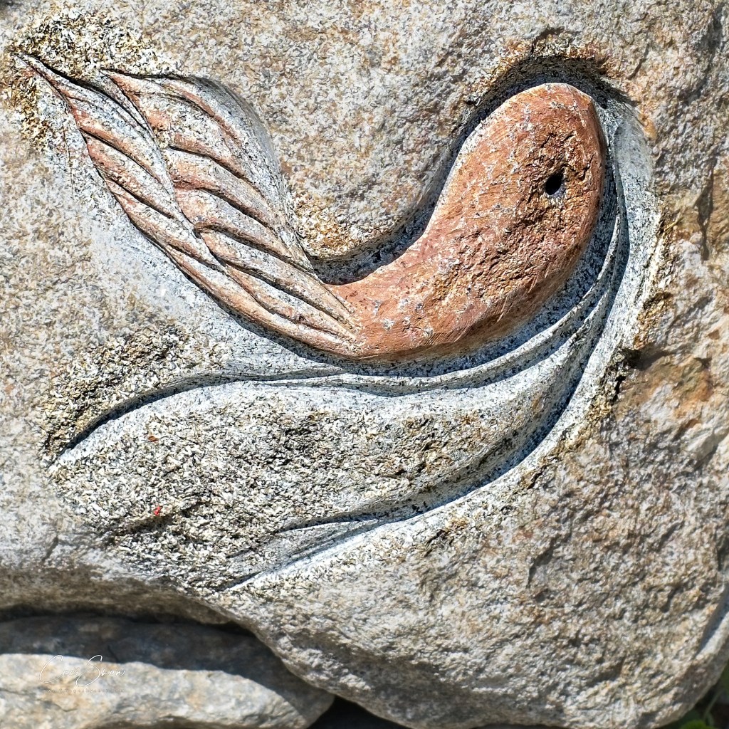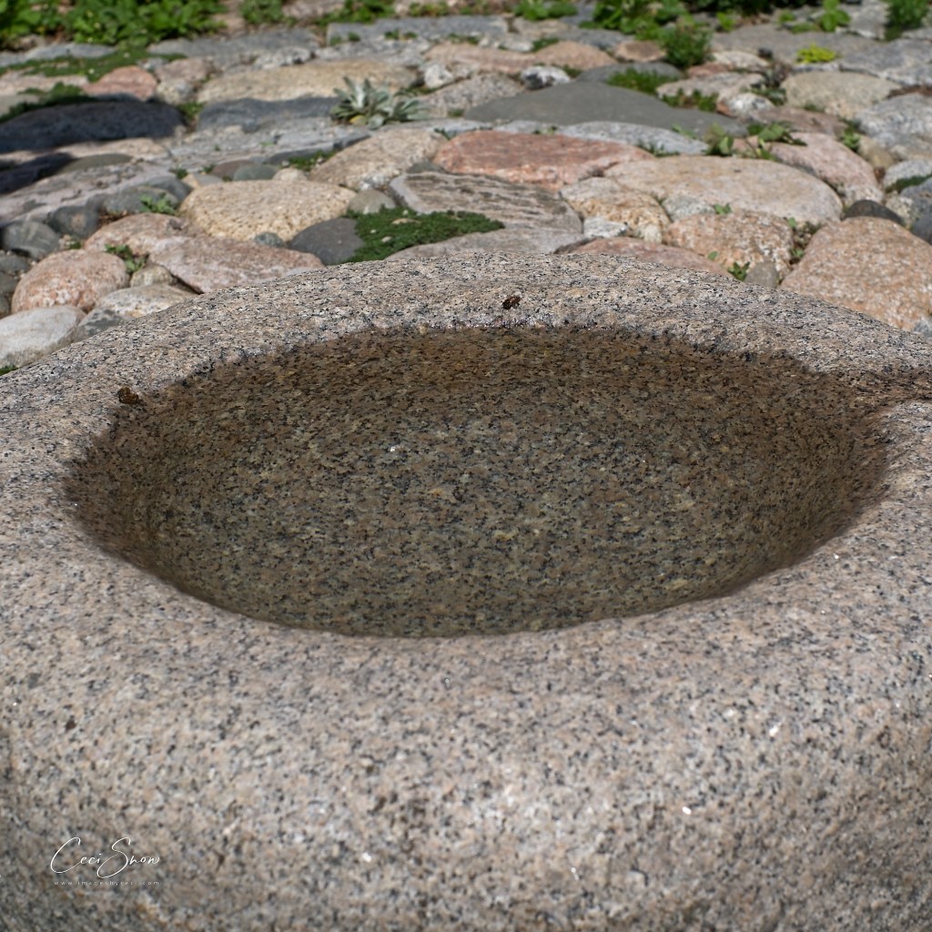 The shop, studio and amazing garden were created by, and are operated by, Gail and Steven Smith, along with their canine companions. Gail gave us a tour of the shop filled to the brim with Steven’s creations as well as an eclectic assortment of other items both useful and whimsical, depending. Then, Steven took us on a detailed tour of his garden, a tribute to Gail. Surrounded by a 12′ high hedge and fence, it is home to his incredible stone sculptures, a curated collection of shrubs, trees and plants, numerous hummingbirds and hundreds of honeybees from a local apiary who visit for a drink of water. It is truly incredible and there are amazing things to discover on every inch of the small space.