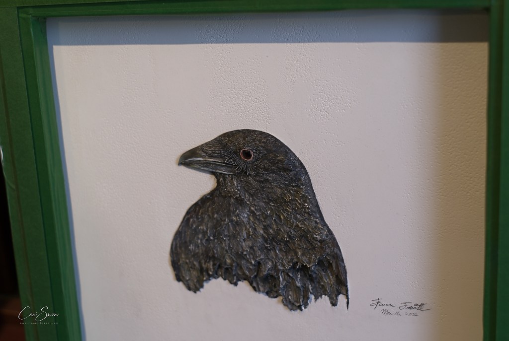 We were fortunate to also have a tour of his private studio space where he showed us many of his amazingly detailed paintings. His adoration of his wife showed through in everything he said as he pointed out the many items from the mundane (a pot lid rack) to the fantastical that he created for her. Despite being offered substantial sums for his works, he isn’t interested in selling them. As they say on their website, their shop “reflects this in our distinctive mix of fine gardening and birding accessories and other nature-related items which complement our own products.”