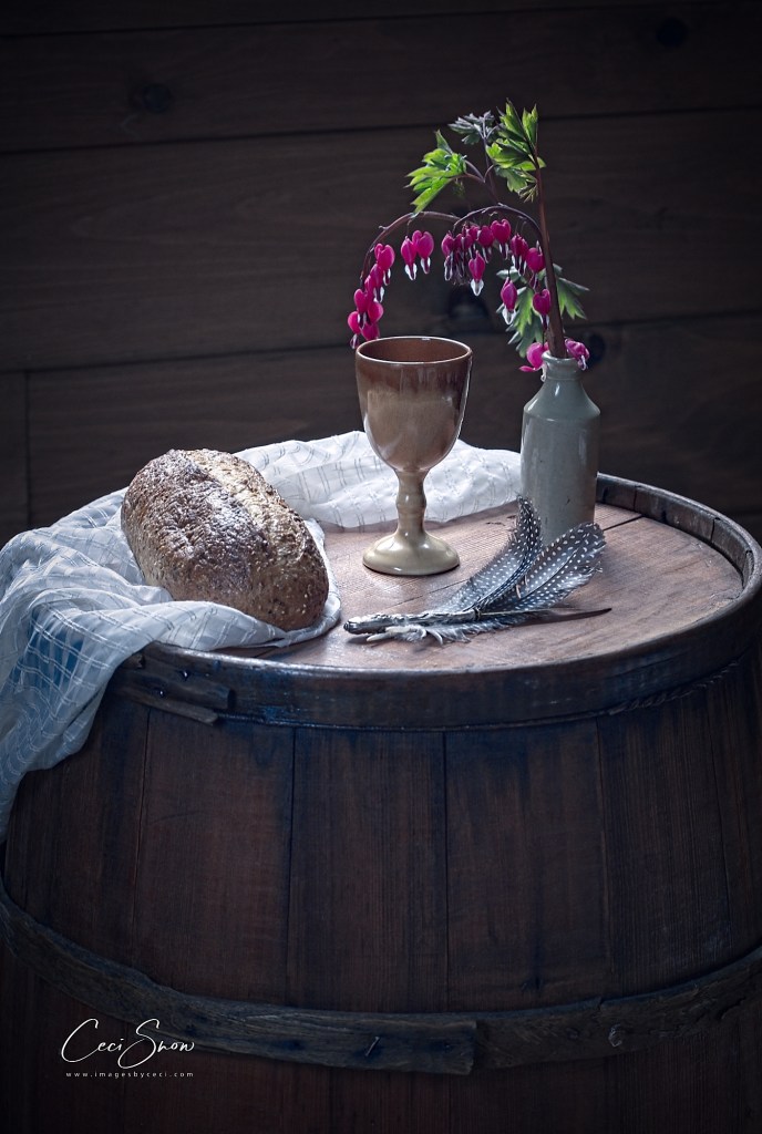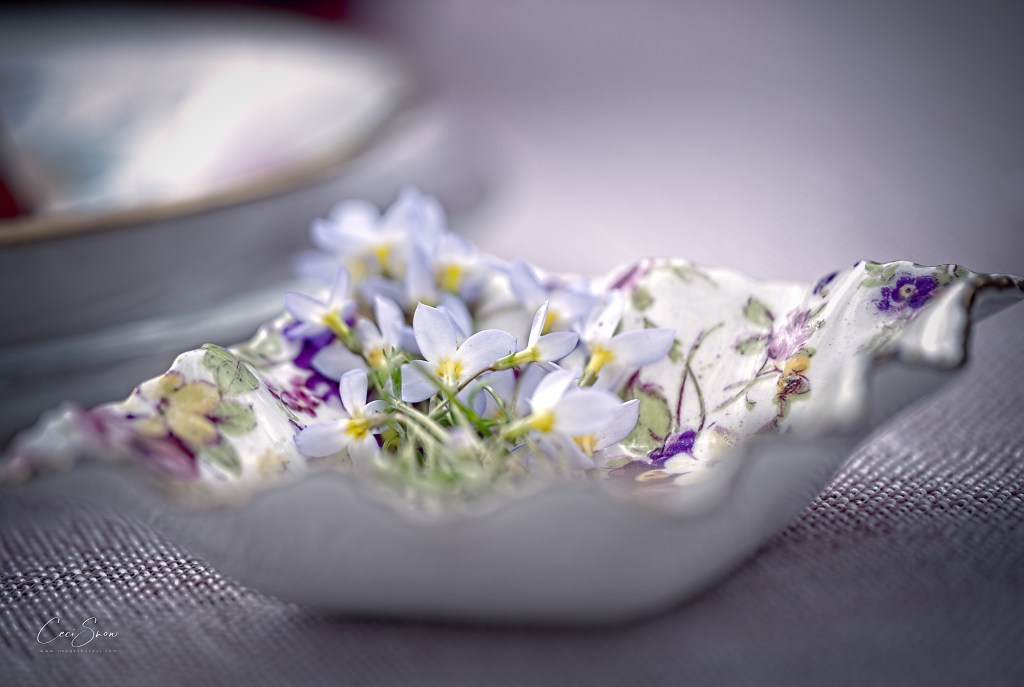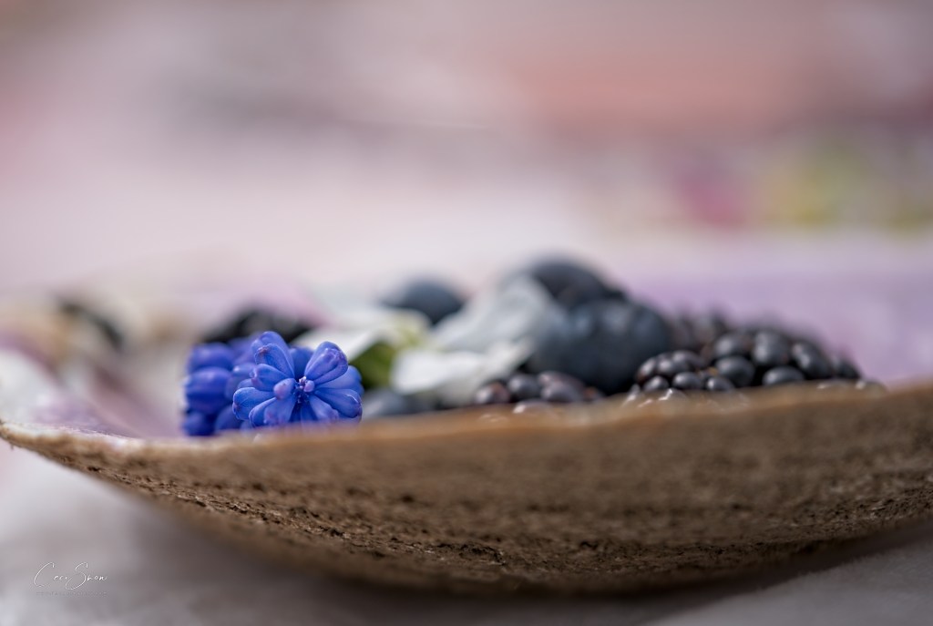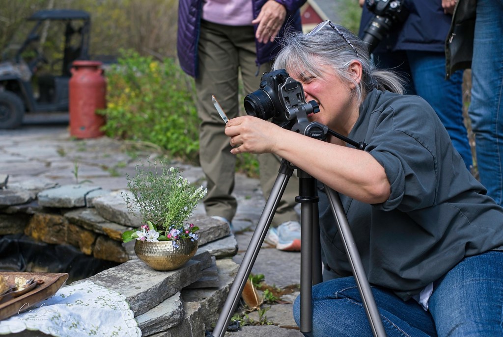 After gorging ourselves on veggie wraps, quinoa salad, cheese and more, we waddled back to our vehicles and headed back to Dominion Hill for a short rest followed by learning about how to style and photograph food and “table scapes”. Both Sylvie and Michelle worked hard setting up scenes for us to work with using box-loads of props they brought with them. We also had a chance to try our own “styling” abilities.