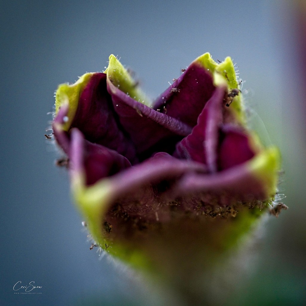 The planter placed to catch the morning sun has petunias in it – hopefully, they’ll survive. The opening bud made an excellent macro subject!
