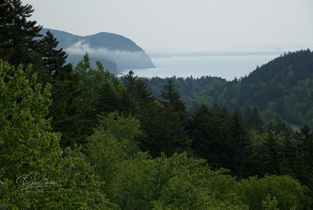 The view eastward over the Bay of Fundy, past Alma and over to the hills of Caledonia was spectacular. As the sun was getting higher in the sky, the fog encapsulating the lowlands was slowly burning off.