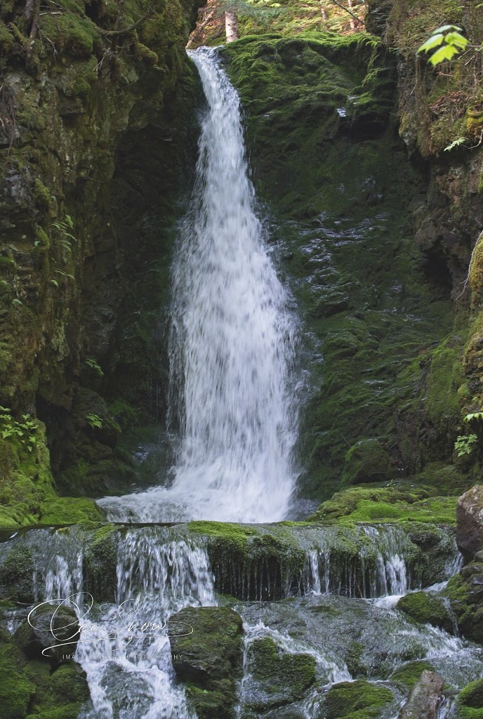 I decided to forgo waiting for the Club members to arrive, so I set off down the trail following a young couple and another lady who were exploring the area. It’s deceiving at first, and then you realize just how steep the path is. At a bend in the trail I stopped to capture a photo of the lower end of the falls.