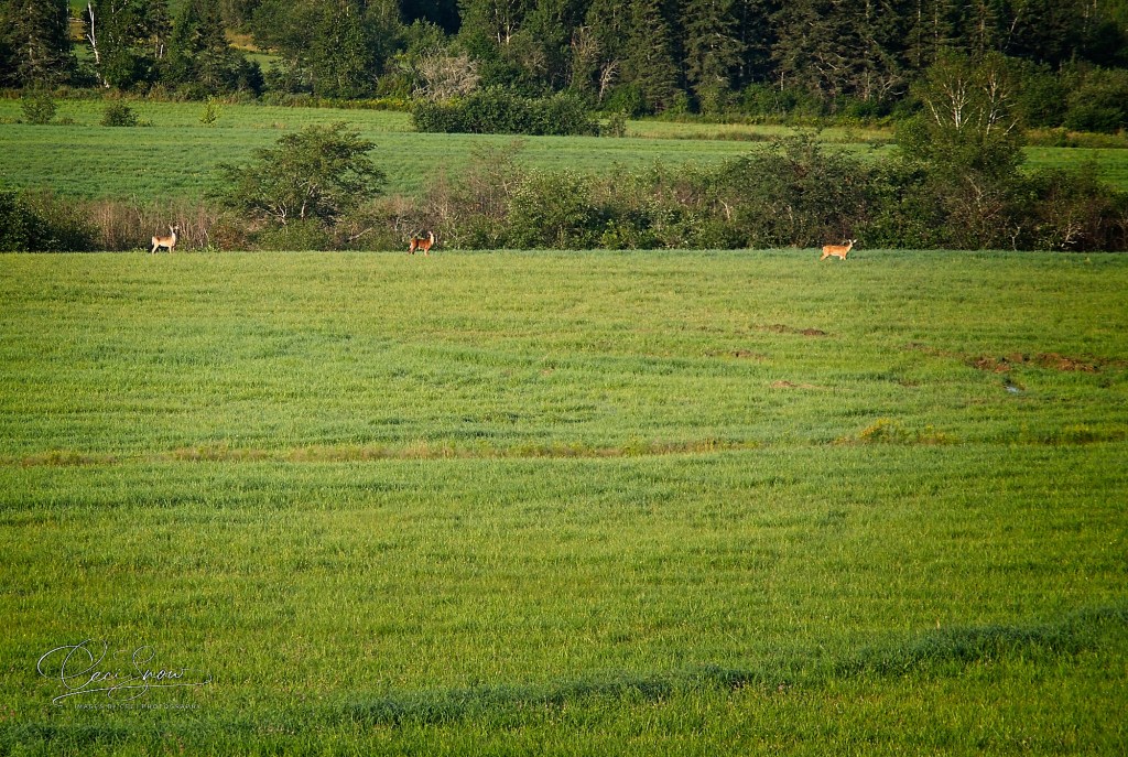 They tend to cling to the treeline at the back and sides of the fields. I enjoy watching them grazing and gambling around in the grass when they’ll let me.