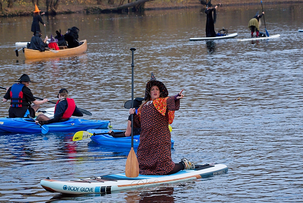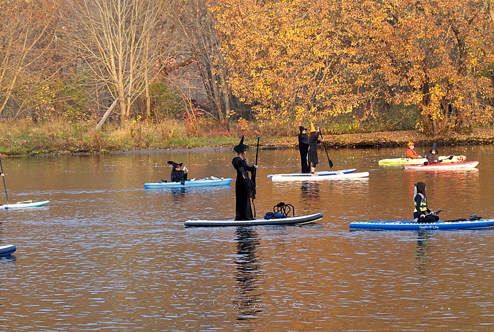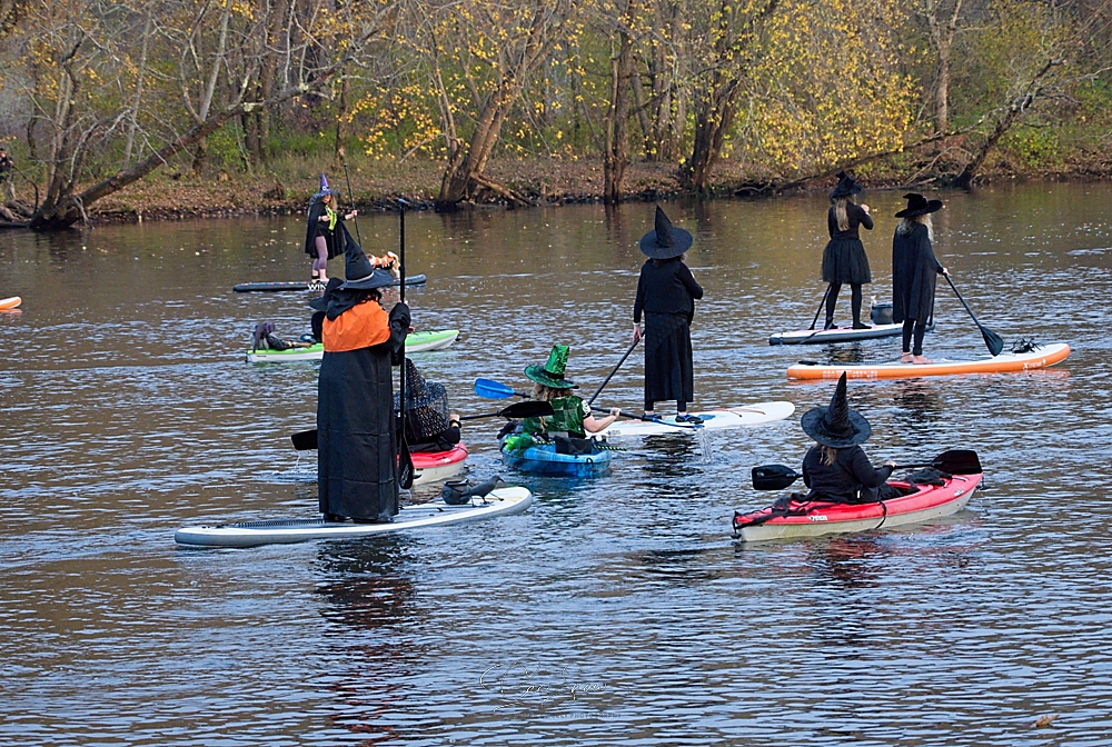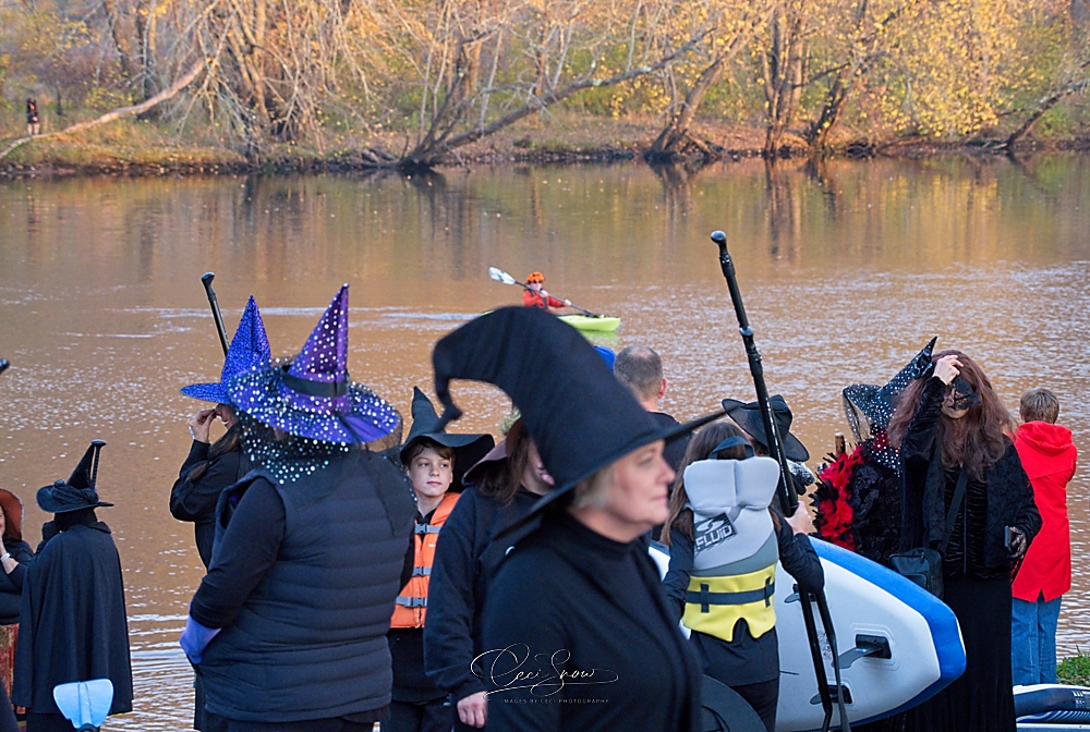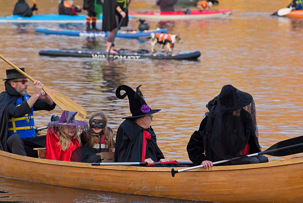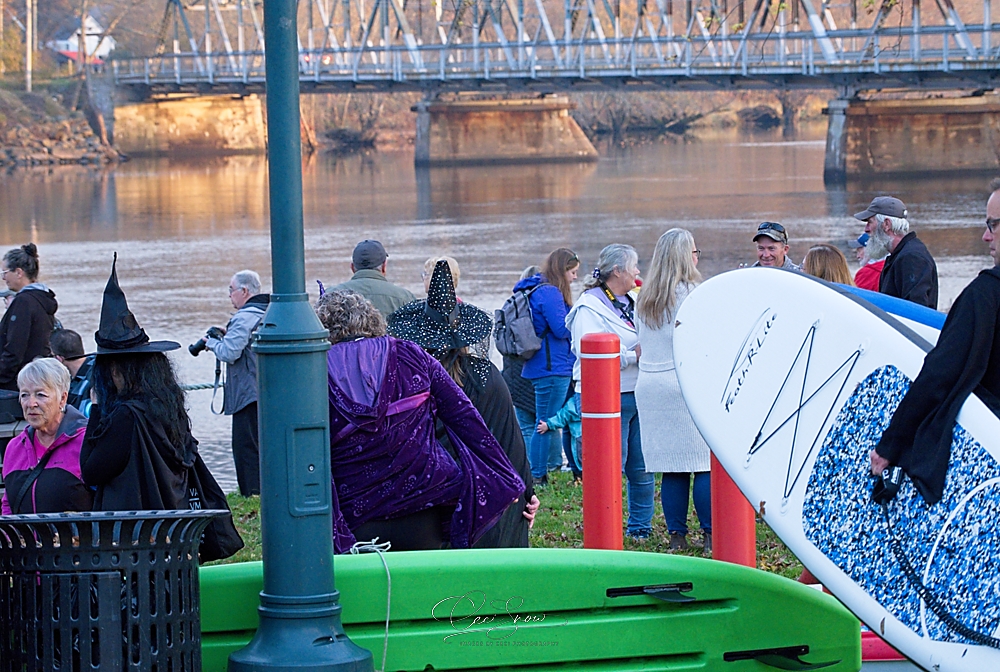 I drove to Hampton because that’s where David grew up. There was an event called “Witches on the Water” taking place. The town was one giant traffic jam as hundreds of people stopped to watch and there must have been around one hundred witches on the water in various crafts. Even when I left, more were arriving lugging the canoes, paddle boards and kayaks to the shore of the Kennebecasis River. The event was in support of the local food bank and bags of food were delivered.