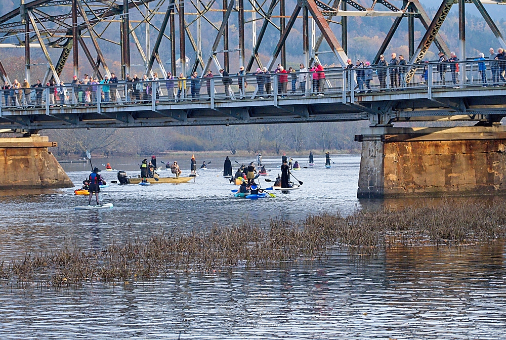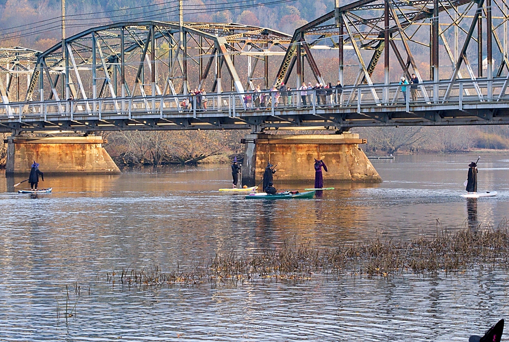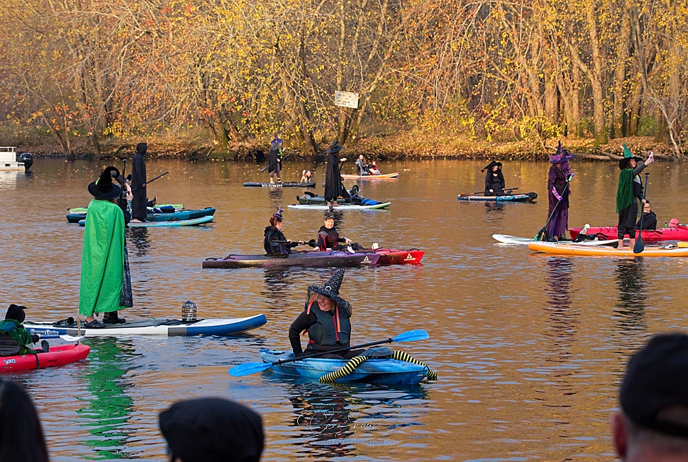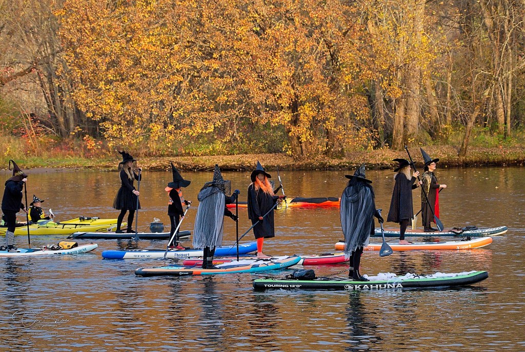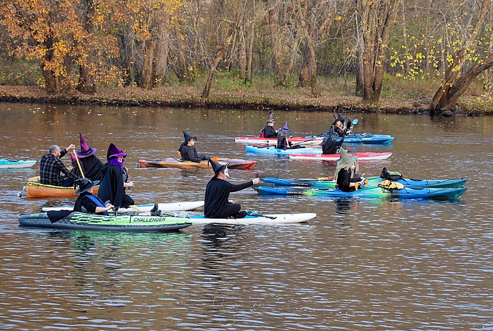 I drove to Hampton because that’s where David grew up. There was an event called “Witches on the Water” taking place. The town was one giant traffic jam as hundreds of people stopped to watch and there must have been around one hundred witches on the water in various crafts. Even when I left, more were arriving lugging the canoes, paddle boards and kayaks to the shore of the Kennebecasis River. The event was in support of the local food bank and bags of food were delivered.