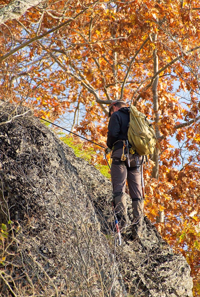 Just past the house where we lived high on the hill overlooking the river is a spot called “Red Rock”. It’s a favourite among climbers and I remember watching with trepidation as David and some of his cohorts scrambled up and down like mountain goats. When I got there today, this young man was climbing too but, unlike those crazy young guys decades ago, he sported ropes and safety gear!