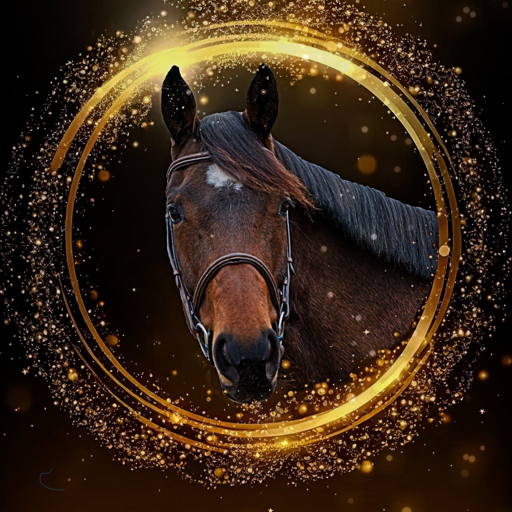 Having the chance to create art as an outlet for emotion is another. A friend asked me, on the spur of the moment, to make a photograph of her horse – a headshot. I did that, on a cold November day a couple of weeks ago, and then came home to create something special for her. This digital art was the result of careful and painstaking techniques applied to blend two photos together in a unique way that made the horse a star. I had it printed on canvas and today she came to pick it up. She was delighted – and so was I with her reaction!