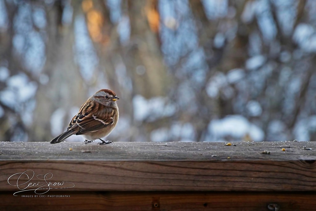 Meanwhile, birds are flocking (pun intended) to our feeder hanging above the deck, fattening up on seeds and grains – no doubt in preparation for hunkering down in some shelter tomorrow.