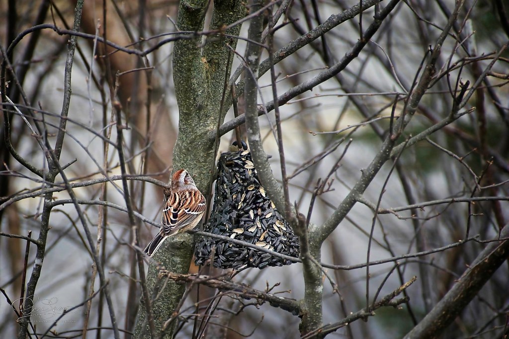 Meanwhile, the new suet bell I bought the other day is a hit with our feathered friends. The smaller birds, sparrows and chickadees, seem to enjoy it the most – although the occasional blue jay gives it a try.