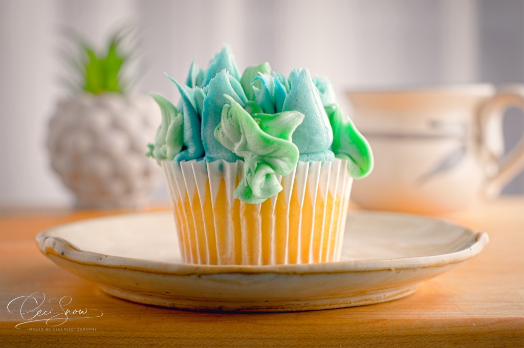 I’ve been trying to learn to be a better food photographer, so I asked my other half to swing by the bakery and bring home a couple of “pretty” cupcakes for me to play with. He did well in choosing two different, but equally appealing, cupcakes. The decorator at #TheRealAtlanticSuperstore bakery did an excellent job on these tasty morsels.