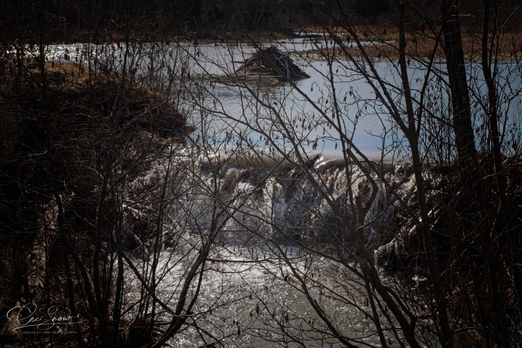 At least we have sunshine for Easter Sunday morning. We have had phenomenal amounts of rain in the past few weeks and the beaver dam down the road is like a raging waterfall below their lodge.
