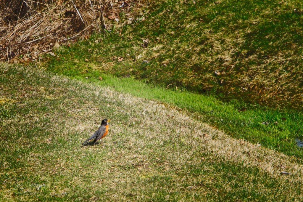 Down on the rapidly greening lawn, a fat robin was busy hauling worms out of the ground – and scolding me for interrupting his/her meal.