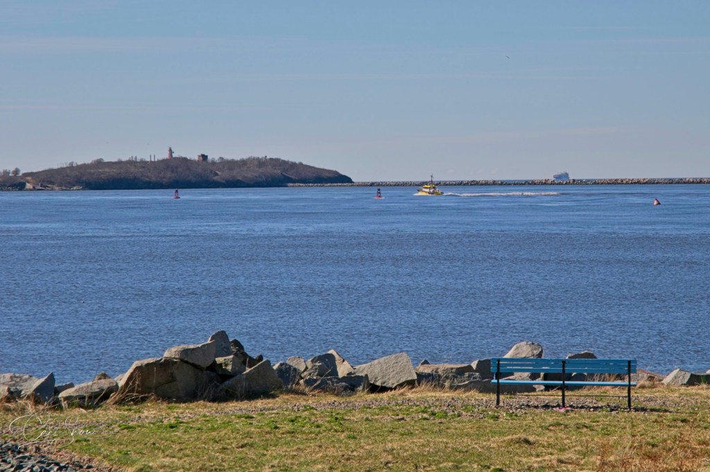 Yesterday I went to Saint John to enjoy lunch and a visit with two friends I hadn’t seen in eons. Since it was a beautiful day, and I was a bit early, I decided to tour my old south-end neighbourhood to see how it had changed. I stopped below the armouries and was delighted to see a park at the entrance to “tin can beach”. It overlooks the harbour and the Bay of Fundy, as well as Patridge Island and its causeway.
