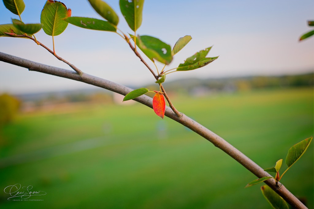 We parted ways and I pedaled on around the trail by the pond and up the hill past the dog park. I stopped for a while to visit David’s tree (and say hello to Samantha’s as well). On his tree one lone leaf has acknowledged the coming change of season and has turned red – perhaps in deference to David’s hair colour? None have changed yet on Samantha’s tree.