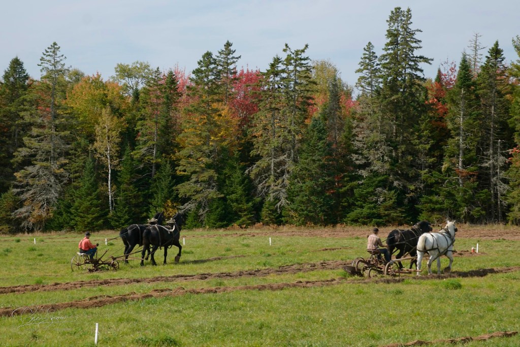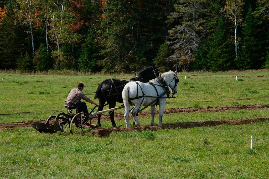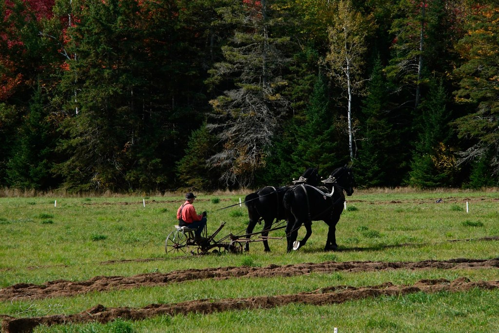 Being a rural farming area, it’s always fun to find out what people are up to. Every year there’s a plowing competition. Some compete with tractors, others with true horsepower like these two gentlemen. Skill is measured in the distance plowed, the consistent depth of the rows, and straightness. It is fascinating to watch and definitely requires well-trained and responsive horses, a good eye, and strength in both men and horses. It’s a tribute to times past when this was how it was done without power tractors, satellite GPS to lay out the path, and so on. Those were the times when farms were diverse and self-sufficient as opposed to many of today’s specialized ‘factory farms’.