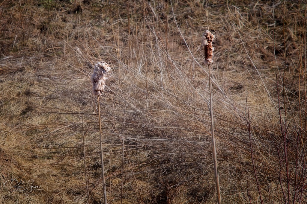 The ground is still frozen so farmers aren’t ready to till their fields just yet, but things are waking up. These cattail pods from last year are about to burst and disseminate their seeds on the wind.