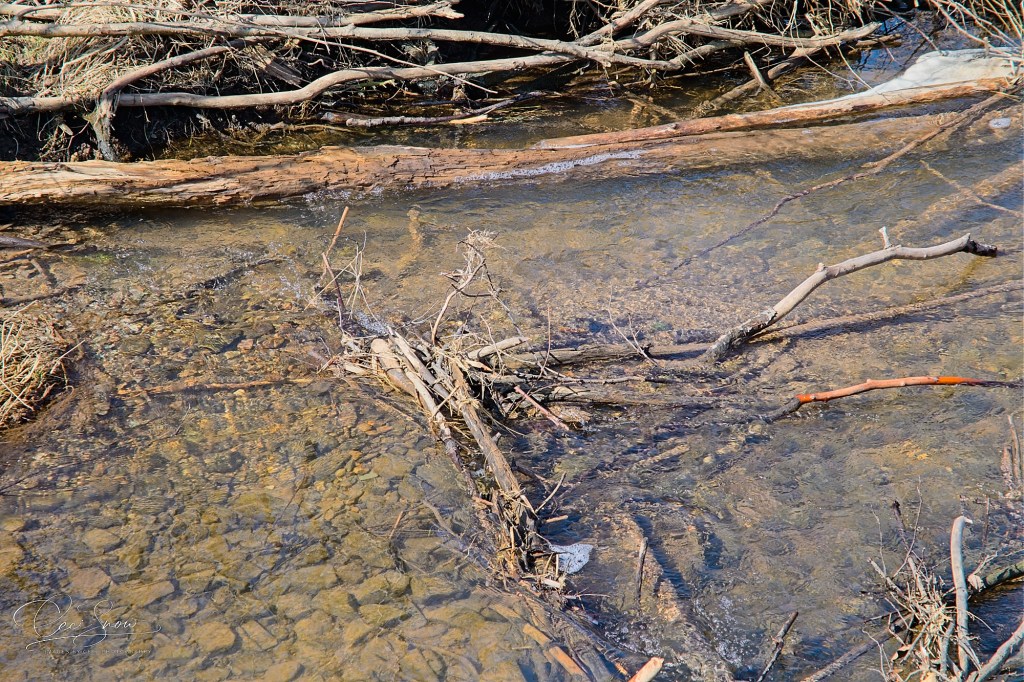 Streams are opening up. For now they are quietly burbling over branches in the way, but as the snow from further north in the province melts, I suspect they will be rushing over their banks to wash the detritus of winter away in anticipation of new growth.